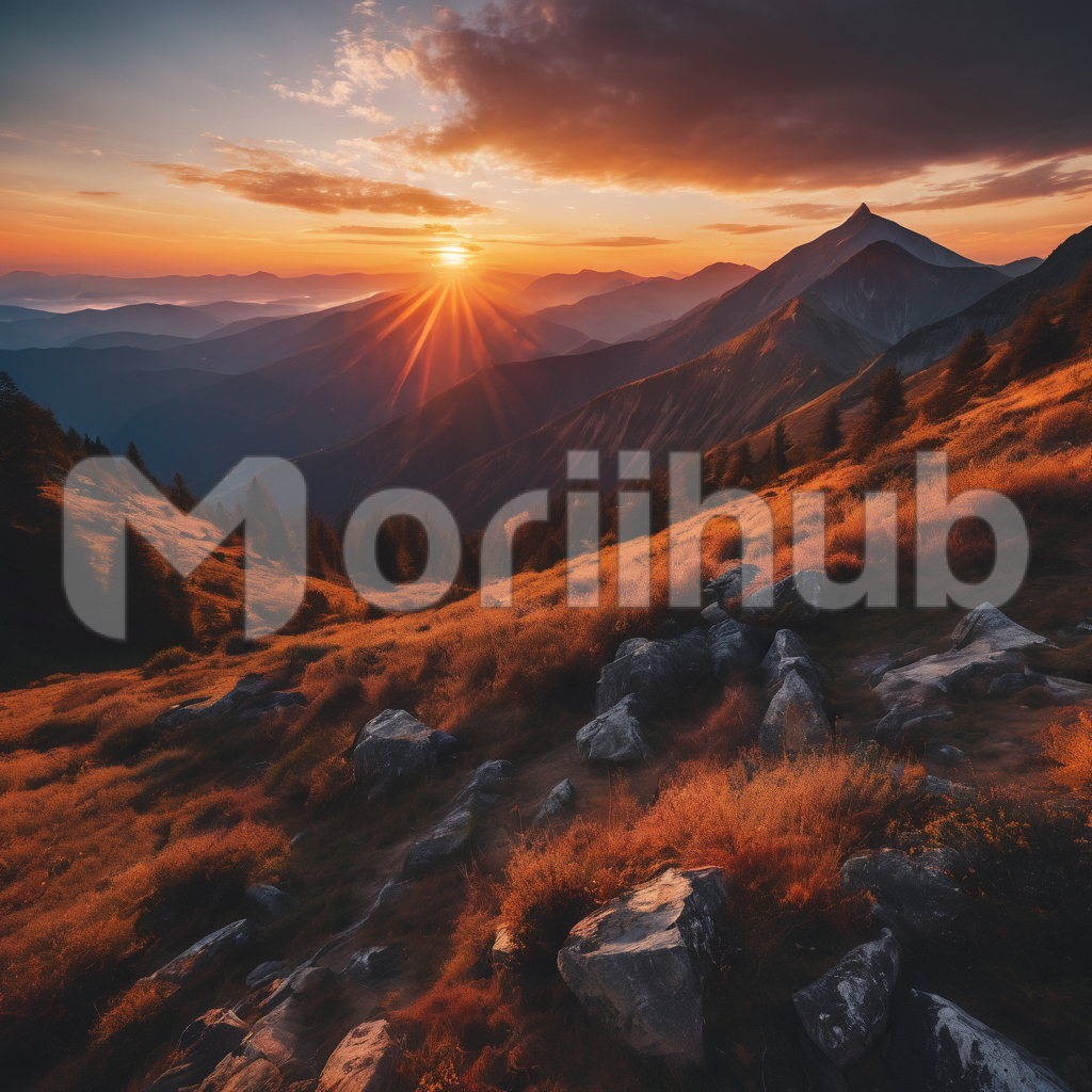 As the sun dips below the horizon, the grassy mountain range is bathed in the golden hues of twilight. The undulating slopes and valleys catch the last rays of sunlight, casting long shadows across the landscape. Against the colorful sky, the peaks stand tall and proud, silhouetted in shades of orange and purple. It’s a serene and picturesque scene, a fleeting moment of natural beauty that captivates the soul.