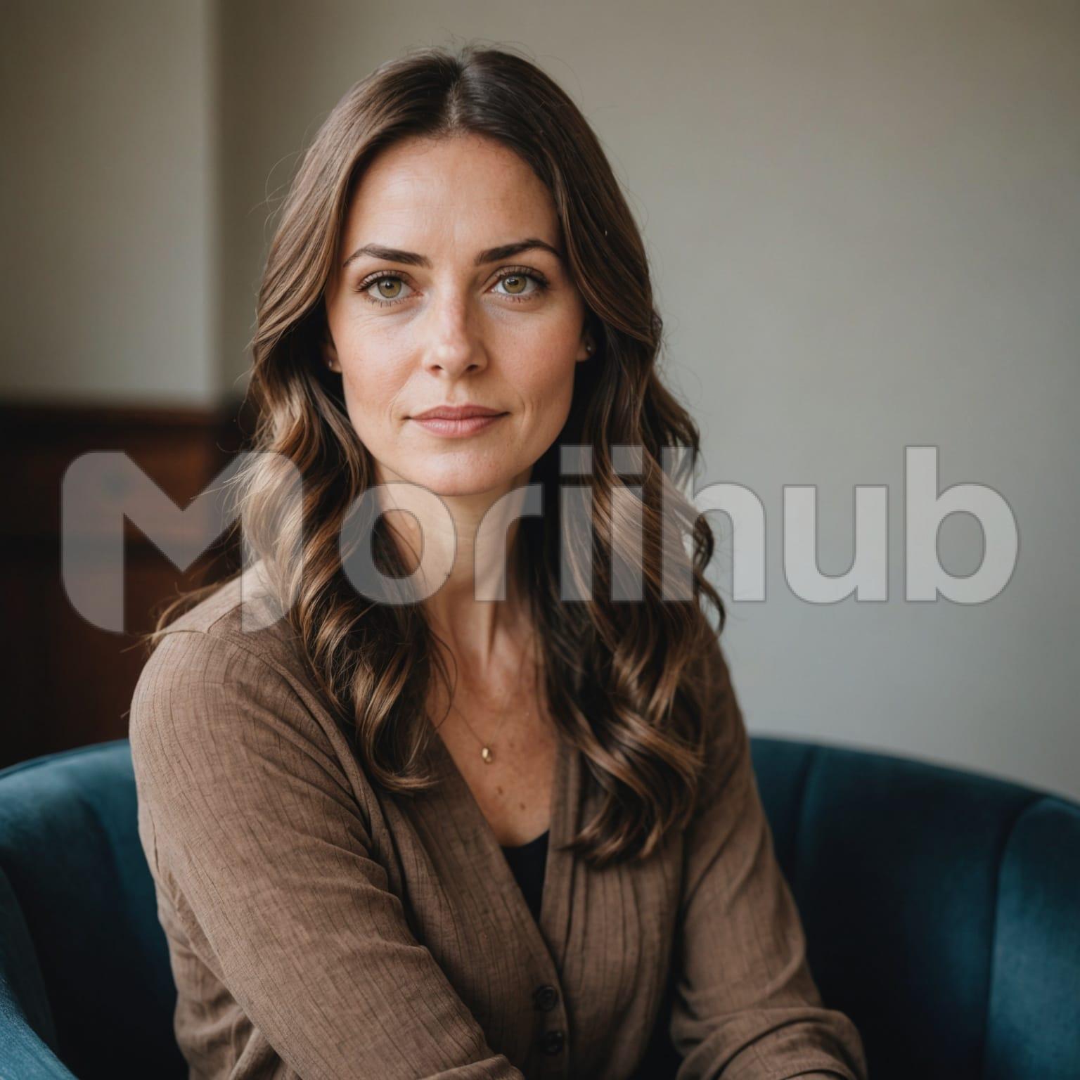 A woman sits calmly, her posture relaxed yet attentive as she gazes ahead with a thoughtful expression. Her features are serene, reflecting a sense of inner peace and contemplation. The simplicity of her surroundings enhances her presence, allowing her quiet confidence to shine through. As she looks forward, there’s an air of curiosity in her gaze, inviting those nearby to ponder the thoughts and dreams that occupy her mind in this moment.