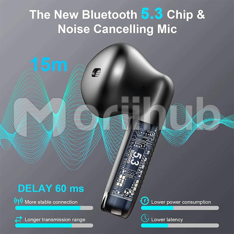 Bluetooth 5.3, effortless pairing: the advanced Bluetooth 5.3 technology delivers a stable, low-latency wireless connection for high-quality sound(music or call). Also, the Bluetooth earbuds can connect automatically to the Bluetooth of your mobile phone when you open the charging box, avoiding complicated operations and saving waiting time.