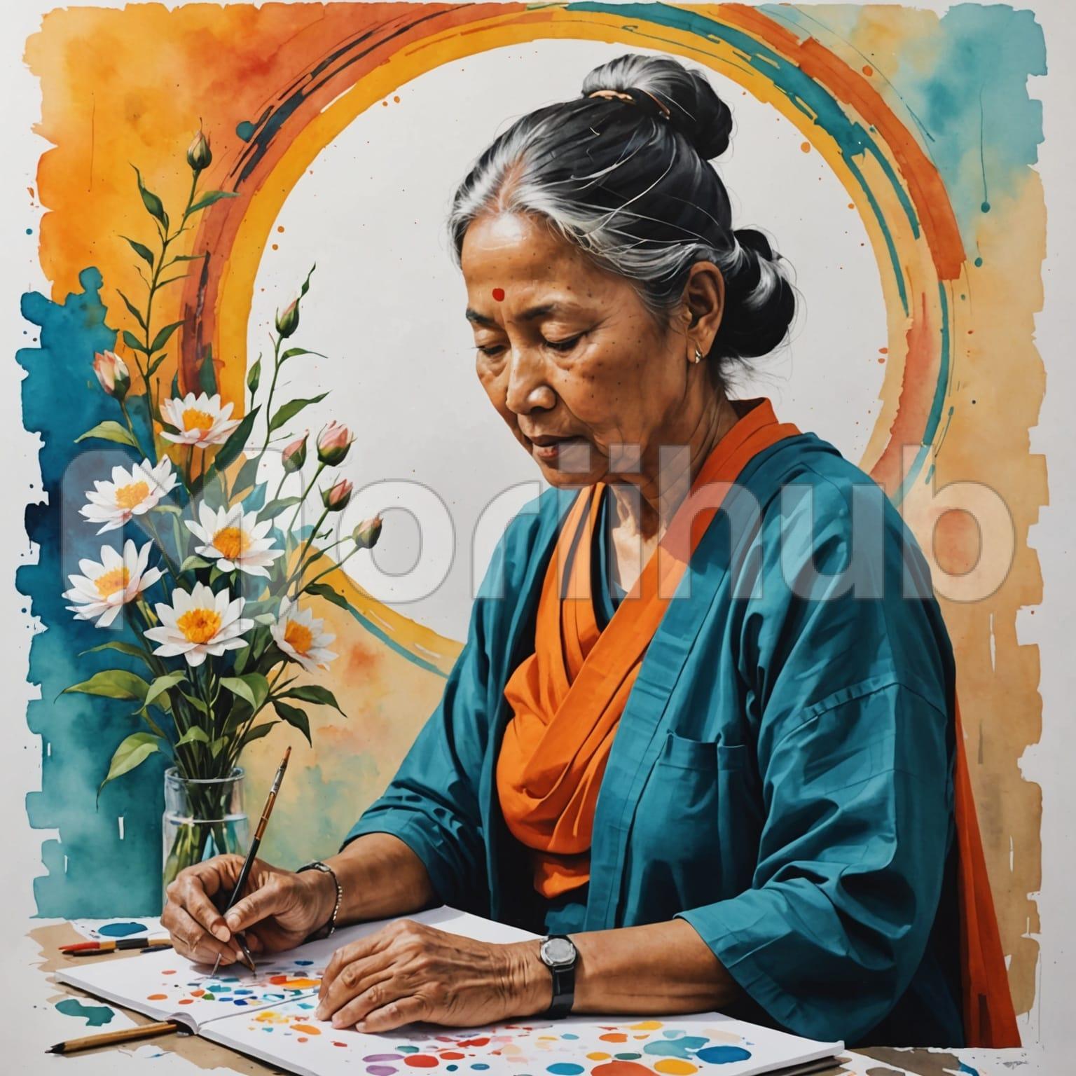 In her abstract art, the lady paints her inner peace with bold, flowing colors and dynamic shapes. Each stroke captures the calmness within, transforming emotions into a visual symphony. The canvas becomes a reflection of serenity, inviting the viewer to experience her journey of tranquility and self-expression.