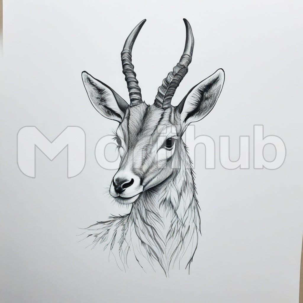 A delicate drawing of an antelope on paper captures its graceful posture and slender form. The fine details of its long legs, curved horns, and expressive eyes bring the animal to life. The sketch showcases the beauty and agility of the antelope in a simple yet captivating way.