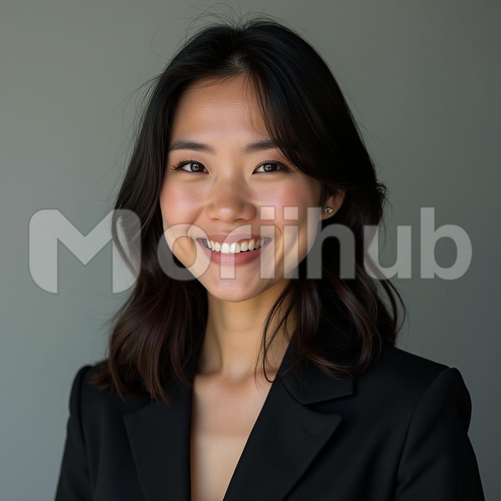 A beautiful woman gazes ahead, her expression lit by a radiant smile that exudes warmth and charm. Her features are soft and balanced, reflecting a natural elegance that captivates effortlessly. The smile she wears enhances her approachable demeanor, adding a touch of grace to her overall presence. Her gaze is steady, thoughtful, and filled with quiet confidence, creating an impression of inner strength and kindness. She embodies a harmonious blend of poise and beauty, leaving a lasting impression through her genuine smile and serene composure.