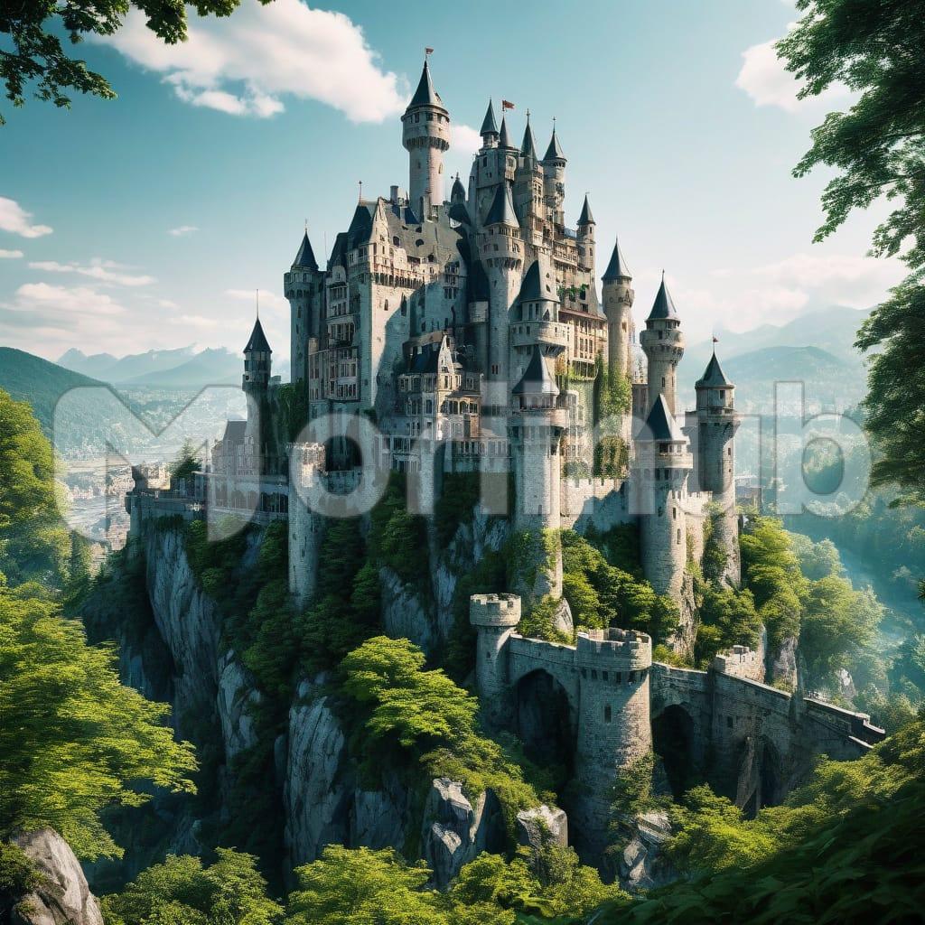 A modern city castle rises amidst the bustling skyline, its sleek design offering a striking contrast to the lush greenery surrounding it. From the castle’s vantage point, nature unfolds in vibrant hues, with trees, rivers, and open spaces blending seamlessly into the urban landscape. It’s where contemporary architecture meets the tranquility of nature.