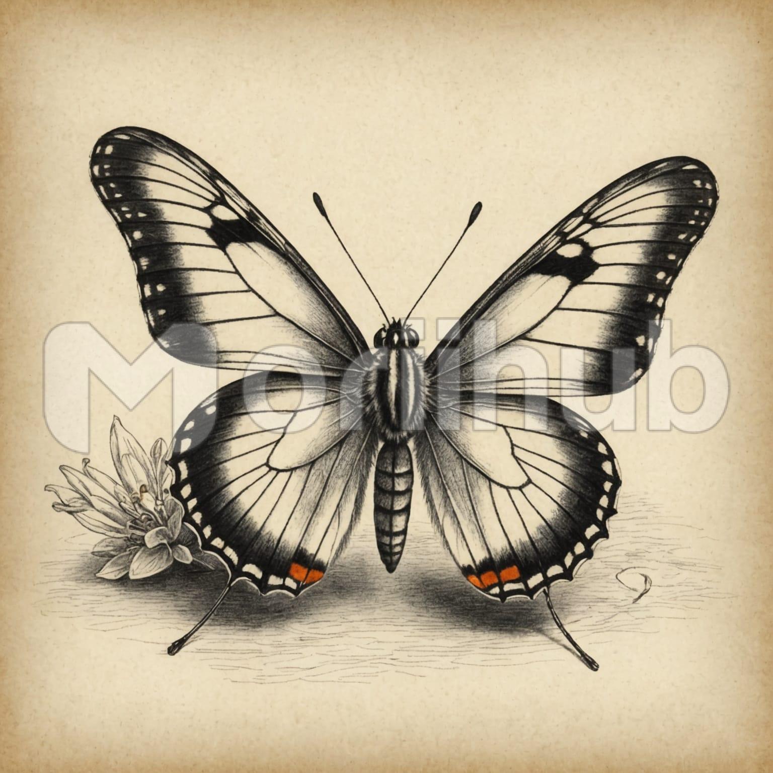In delicate graphite strokes, a butterfly emerges on paper. Its wings, gracefully spread, showcase intricate patterns and delicate veins. Each detail, from the gentle curves of its body to the symmetrical patterns on its wings, captures the essence of fragile beauty. The sketch blends light and shadow with precision, creating depth and lifelike realism. Despite its monochrome simplicity, the butterfly seems ready to flutter off the page, embodying a moment frozen in time. It’s a testament to the artist’s skill in capturing both the fragility and elegance of nature through the medium of pencil.
