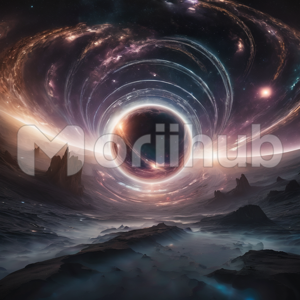From the rocky terrain below, a mesmerizing sight unfolds in the celestial expanse above. A planetary object, its surface aglow with ethereal light, glides along its orbit, leaving behind luminous trails that paint the cosmic canvas. Against the stark backdrop of rocky formations, the celestial ballet mesmerizes observers, hinting at the vastness of the universe and the beauty of its mysteries waiting to be discovered.