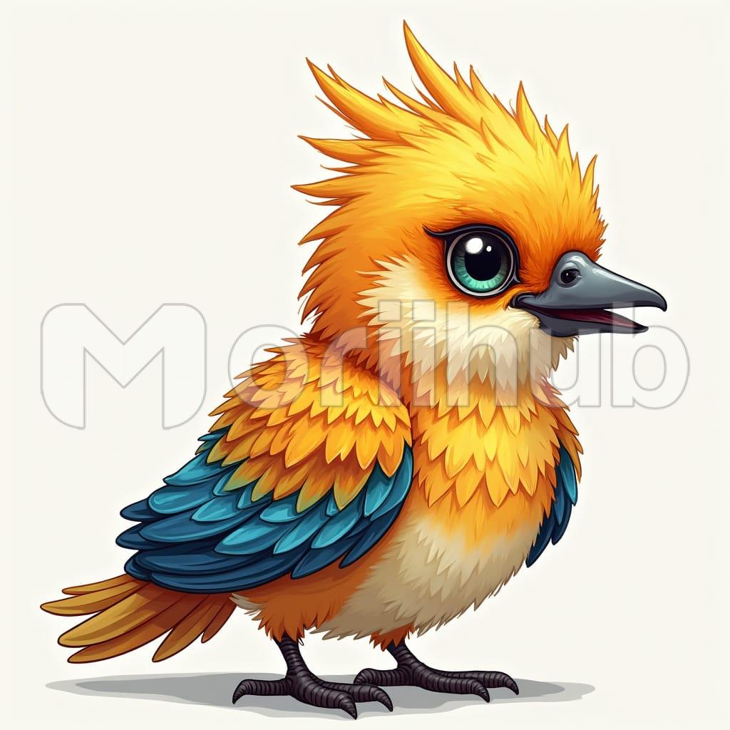 A cartoon portrayal of a bird stands out with lively details, its feathers drawn with exaggerated strokes that add a sense of movement. The beak is slightly curved, and its eyes are large, giving an expressive and playful look. The background is minimal, ensuring the focus remains on the bird’s lively presence. Every line and curve contributes to a whimsical feel, capturing the essence of animated creativity in a visually striking way.