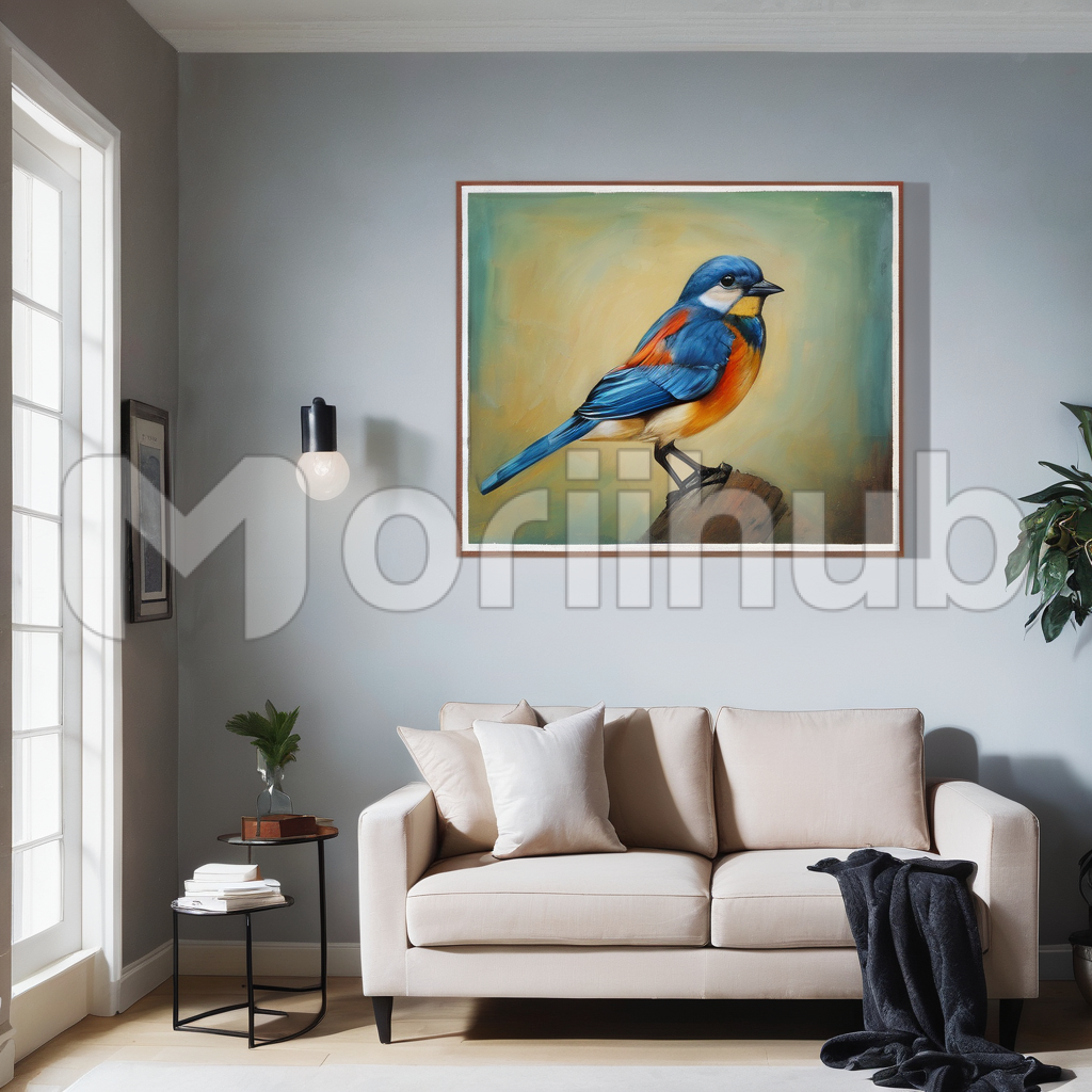 A bird painting adorning a home wall transforms the space into a vibrant display of natural beauty and artistic expression. Whether captured in realistic detail or depicted abstractly, the painting brings a sense of freedom and serenity indoors. It serves as a focal point, drawing the eye with its colors and intricate brushstrokes, while also adding a touch of elegance and personality to the room. Positioned strategically, it complements the decor and evokes a connection to the outdoors, making the home feel lively and inviting with its avian charm.