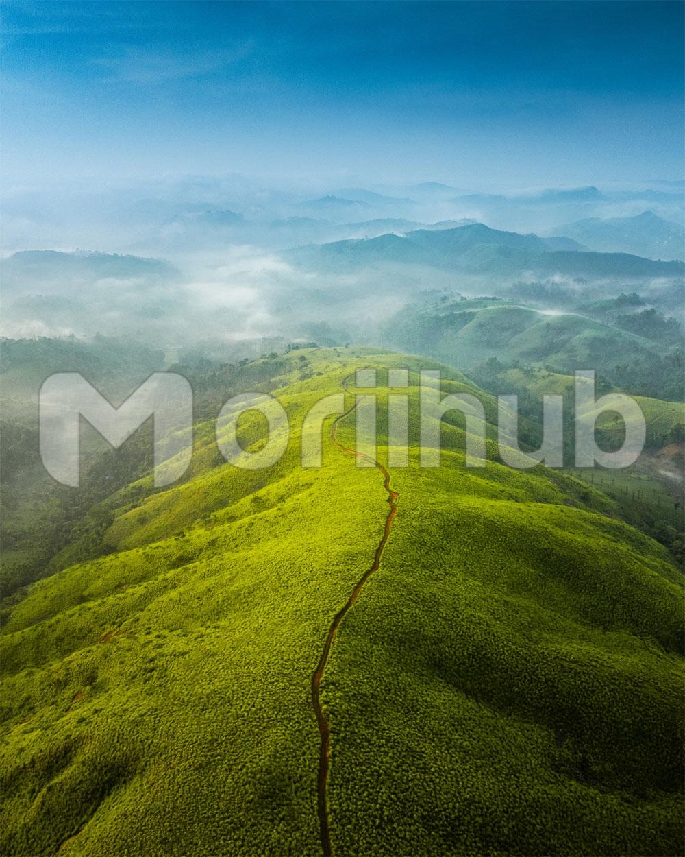 From a bird’s eye perspective, green hills stretch like undulating waves, creating a mesmerizing top view. Nature’s canvas is painted in various shades, from emerald to olive, forming a patchwork quilt of tranquility. The contours of the land gracefully unfold, revealing the quiet beauty and serene simplicity of the rolling green landscape.