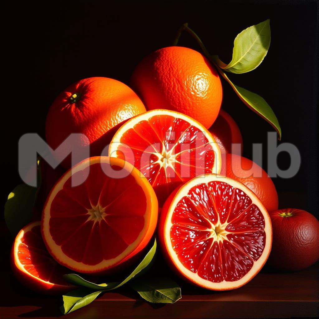 This blood orange artwork showcases its deep, rich red hue and striking contrast with the bright orange rind. The intricate details of the textured skin and juicy interior highlight the fruit’s unique appearance and vibrant color. It’s a bold and refreshing representation of this citrus delight, capturing its sweetness and tang.