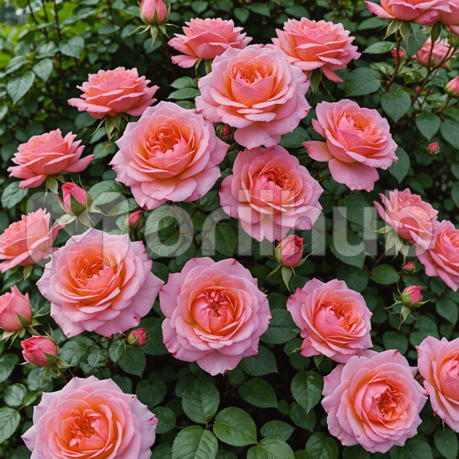 A rose bush stands with its stems reaching outward, each carrying blooms in varying stages of openness. The petals appear layered and full, creating a contrast against the surrounding leaves. The leaves are defined, adding structure to the plant’s form. Some blooms are positioned higher, catching more light, while others rest lower, closer to the base. The bush’s arrangement gives it a balanced, rounded shape, with no single area appearing overly crowded. Its presence suggests careful growth, as though it has been tended over time to maintain its healthy, steady form.