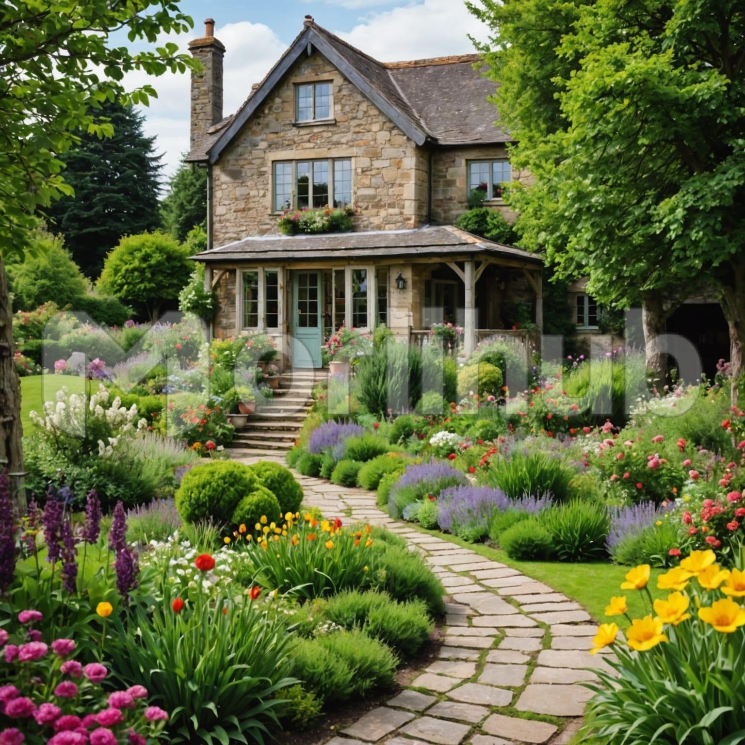 Approaching the house, a pathway is lined with vibrant flowers, their colors painting a cheerful welcome. Each bloom, from delicate roses to bold sunflowers, nods gently in the breeze, enhancing the path’s charm. The house itself stands in quiet elegance, framed by lush greenery and bathed in soft sunlight. Windows reflect the clear sky above, adding a touch of brightness to the scene. The sight of the flower-lined pathway invites a serene stroll, promising a peaceful ambiance that complements the natural beauty surrounding the home.