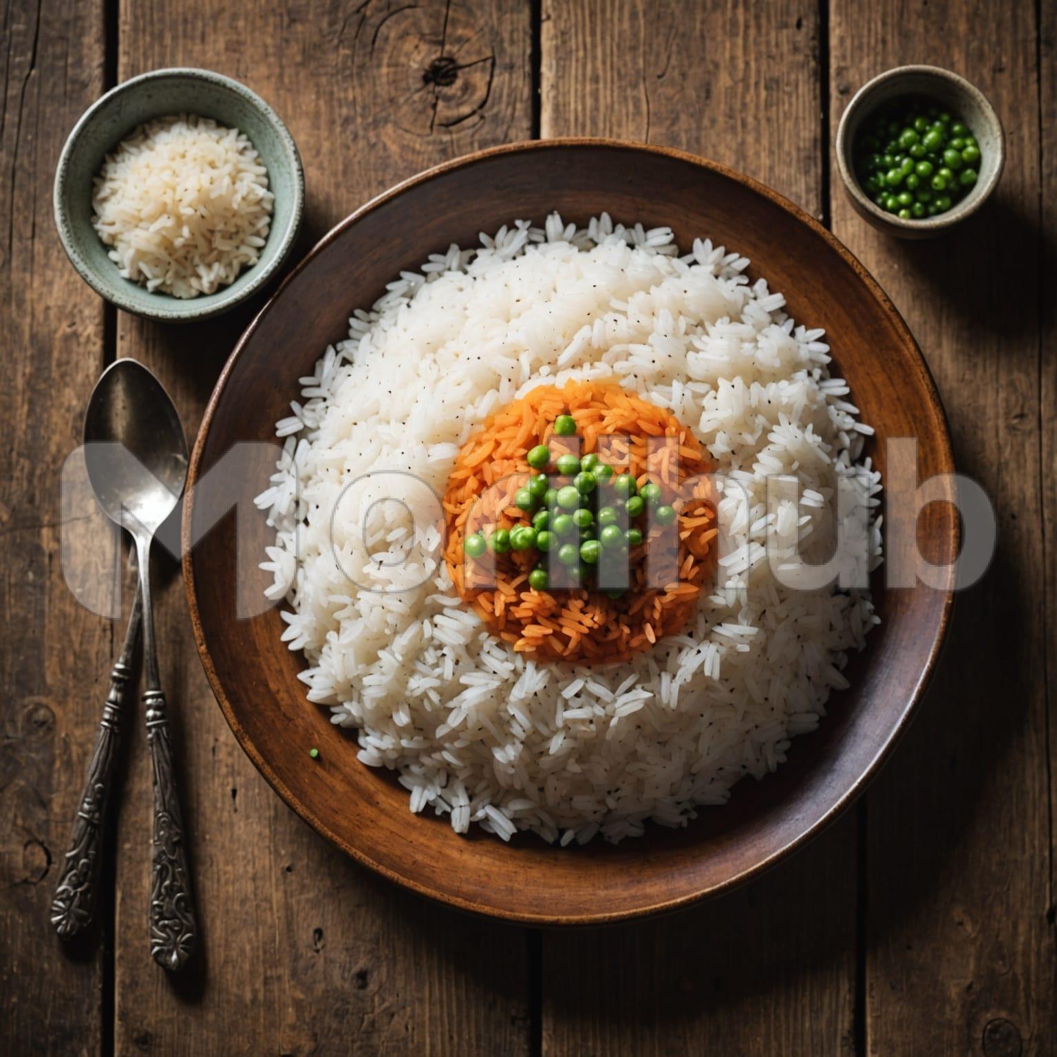 A bowl of rice rests plainly, its surface even, with grains gathered closely together. The arrangement is unembellished, carrying a sense of quiet simplicity that feels complete on its own. The bowl serves as a steady frame, holding the rice without drawing attention away from it. It conveys nourishment and balance, a reminder of the ordinary yet essential. The sight is calm, steady, and grounded, offering presence through something so familiar and sustaining.