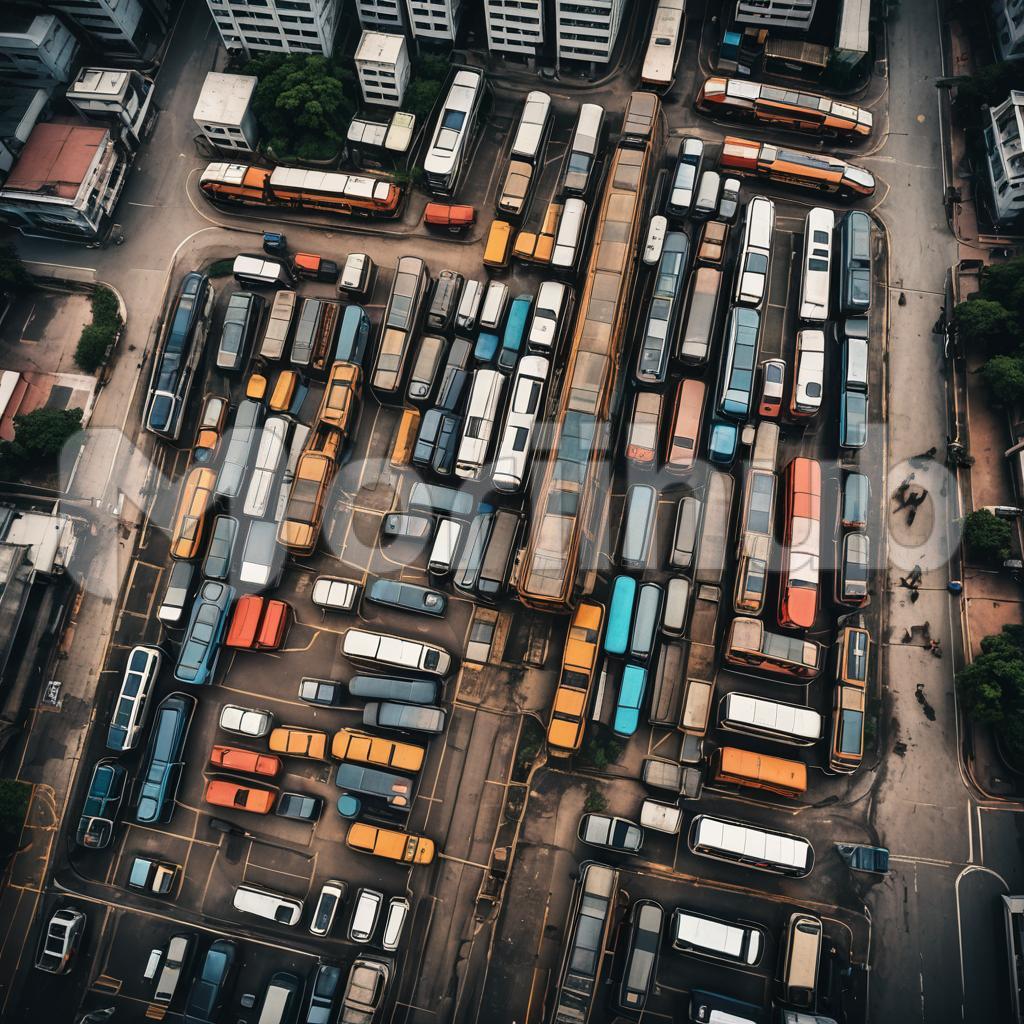 From a drone’s perspective, the bus park unfolds like a bustling hive of activity, with vehicles weaving in and out, passengers embarking on journeys, and vendors bustling about. The aerial view captures the organized chaos, revealing rows of colorful buses, punctuated by bustling terminals and waiting areas. Amidst the hustle and bustle, the drone’s lens encapsulates the dynamic rhythm of urban transportation, offering a glimpse into the vibrant pulse of city life.