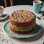 A cake rests on a plate, its surface scattered with sprinkles that add small bursts of detail. The shape is steady, each edge defined, offering a pleasing contrast against the plain plate. Alongside it sits a cup of coffee, dark and still, its presence balancing the sweetness before it. Together, the cake and coffee form a quiet pairing, simple yet complete. The arrangement carries no excess, only a focus on what is present. It feels calm, intentional, and centered on the small comfort of taste and pause.