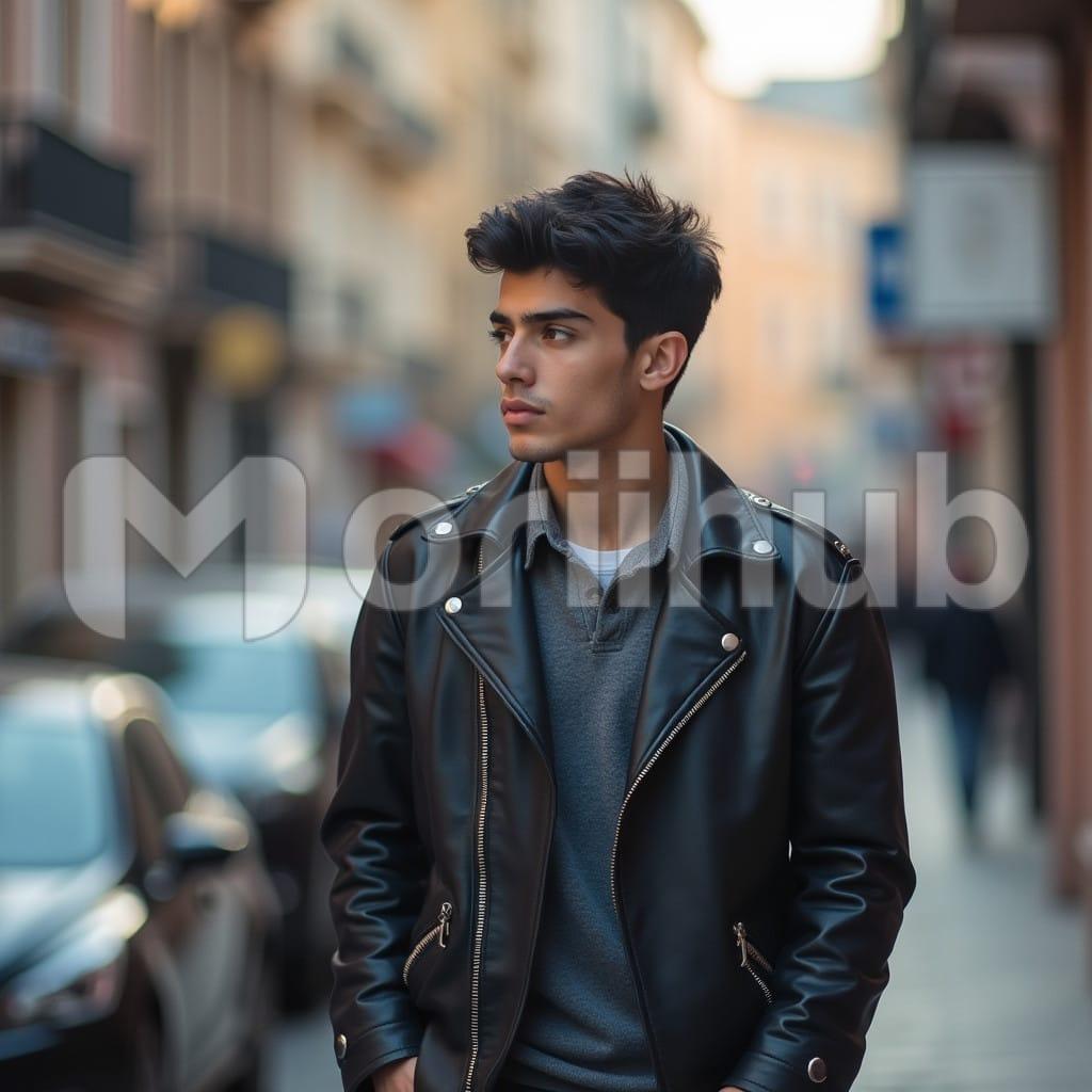 A young man strides down the street, his eyes turned to the side, seemingly captivated by something just beyond view. His posture exudes ease, hands swinging lightly as he moves. The urban surroundings frame him, with buildings lining the path and subtle details of a bustling city life quietly present. The pavement stretches underfoot, reflecting the rhythm of his steps. His expression suggests curiosity or quiet thought, a moment of introspection amid the ordinary. The scene captures a fleeting connection between the individual and his urban environment.