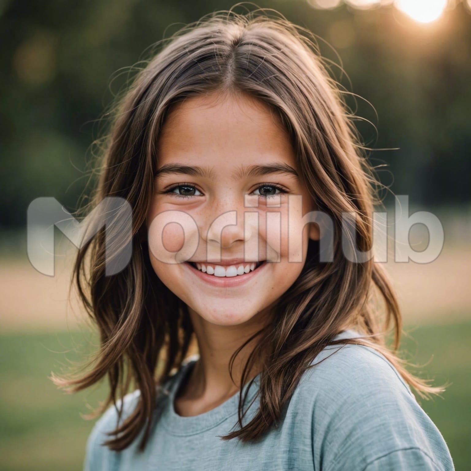 A cute girl beams with a heartwarming smile, her face aglow with pure happiness. Her eyes sparkle with joy, reflecting the light of her contagious grin. The warmth of her laughter fills the air, drawing others to share in her delight. In this moment, her innocence shines brightly, casting a radiant aura around her. With every smile, she spreads happiness effortlessly, reminding all who see her of the simple beauty of joy.