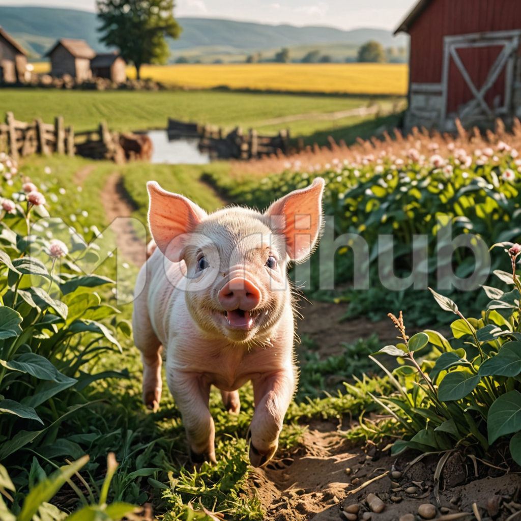 Amidst the rustic charm of the farmyard, a little piggy ambles along with a cheerful oink. Its rosy snout points skyward as it trots, chubby legs carrying it with determined steps across the dirt. Each trot leaves tiny imprints in the soil, a testament to the piggy’s playful exploration. The sun casts a warm glow over the scene, highlighting the piggy’s pink-hued coat as it moves with curious excitement. In this idyllic countryside setting, the piggy embodies the simple joys of rural life, a charming denizen of the farmyard.
