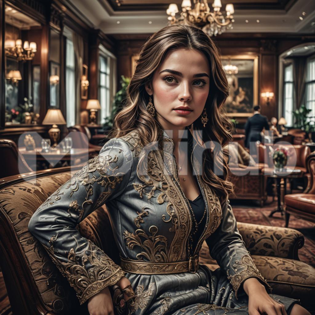 In the elegant lounge, a beautiful lady exudes an aura of timeless grace and sophistication. Her eyes, pools of warmth and wisdom, reflect the soft glow of ambient lighting. Her attire, effortlessly chic, complements the refined surroundings, evoking an air of understated allure. With a poised demeanor and a captivating smile, she effortlessly commands attention, embodying a blend of elegance and allure that enhances the ambiance of the lounge, making it a place where charm meets tranquility.