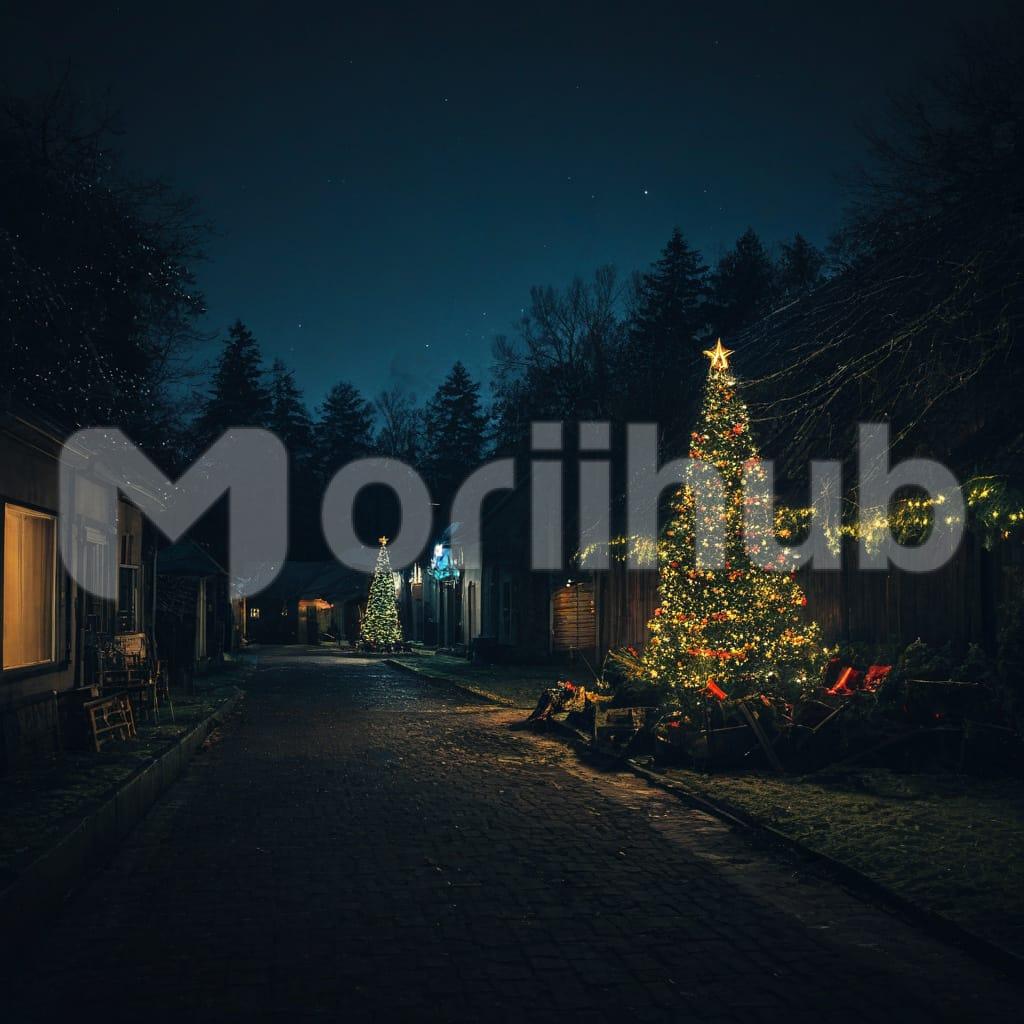 On Christmas Eve night, the streets sparkle with beautifully decorated Christmas trees, their twinkling lights reflecting the festive spirit. Garlands of silver and gold adorn the branches, while ornaments shimmer in the cool night air. The streets come alive with holiday cheer, creating a magical, heartwarming scene that fills the night with joy and wonder.