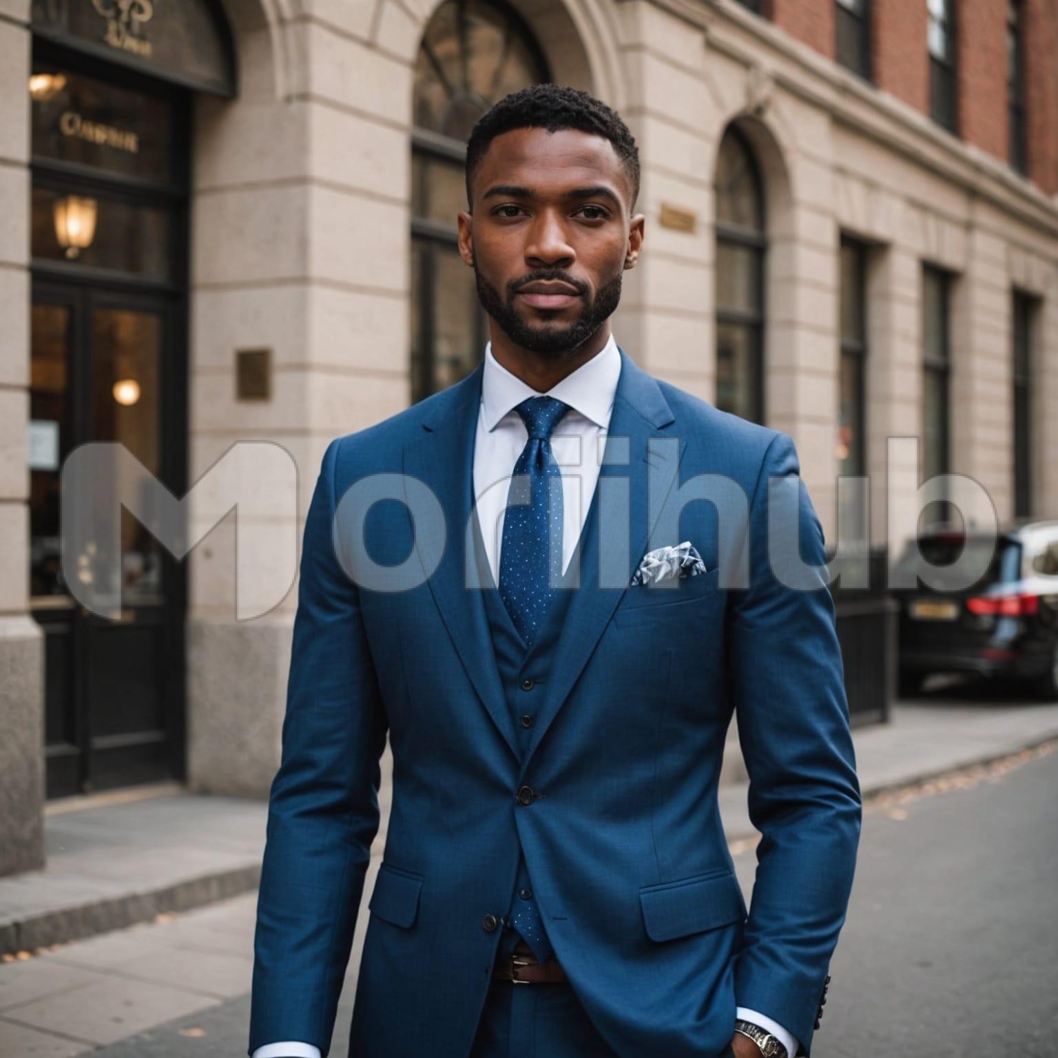 A dapper man stands looking on, dressed in a sharp, well-fitted suit. The jacket sits neatly on his shoulders, its lines clean and structured. A crisp shirt peeks out beneath, paired with a tie knotted simply and resting flat. His expression remains calm, gaze directed ahead with quiet focus. Every detail of his outfit appears chosen with care, from the smooth fabric to the precise fit. He holds a composed presence, the suit adding to his sharp, refined appearance. The overall scene feels neat, balanced, and confidently understated in its simplicity.