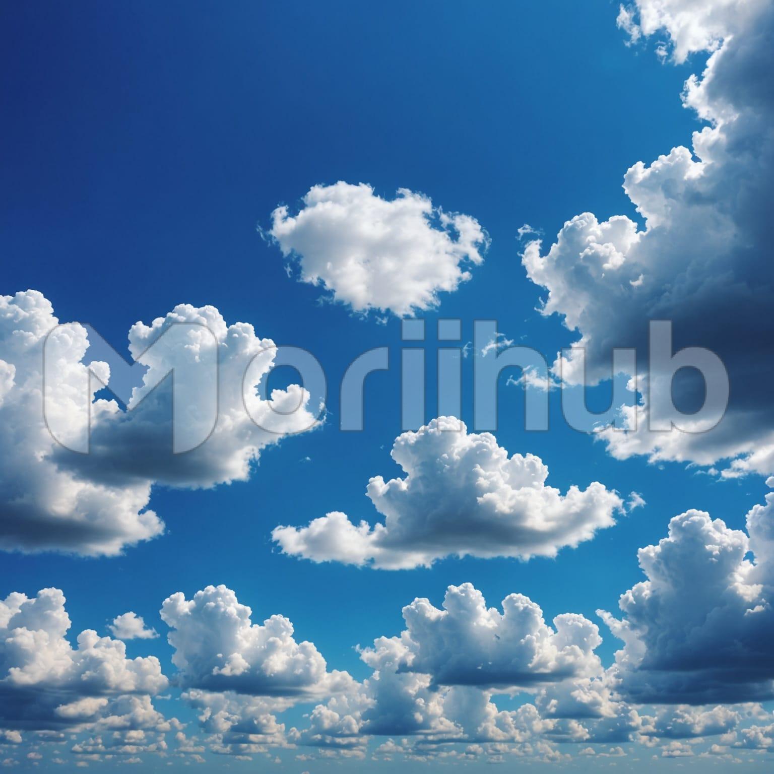 Clouds drift across the blue sky, each shape distinct yet ever-changing. The sky behind them remains wide and even, a steady blue that frames the movement above. There’s a sense of space and calm in the open air, with no signs of storms or unrest. The clouds remain light and slow, undisturbed by wind. No harsh shadows fall below, just a peaceful rhythm between the clear sky and the soft forms suspended in it.