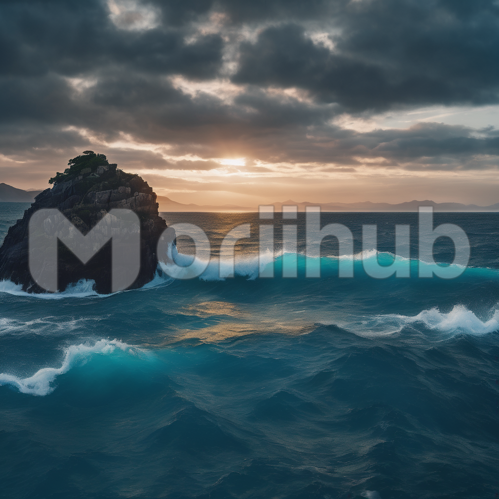 A solitary verdant rock stands resilient amidst the vast expanse of the boundless ocean. Nature’s greenery clings tenaciously to its weathered surface, defying the relentless waves that crash upon it. The contrast of lush vegetation against the deep blue sea is a testament to the power and beauty of the natural world. This rugged islet, adorned with vibrant life, represents the harmonious coexistence of earth and water in a tranquil, oceanic tableau.