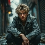 A teenage boy with short dark blonde hair is squatting, his gaze directed forward with a calm and composed expression. He dons a jean jacket, which adds a touch of casual style to his appearance, enhancing his youthful and laid-back vibe. The jacket fits comfortably, giving him a relaxed look while still maintaining a sense of effortless cool. His posture, crouched close to the ground, suggests he’s taking a moment to observe his surroundings. The combination of his attire and stance captures a blend of youthful energy and quiet contemplation.