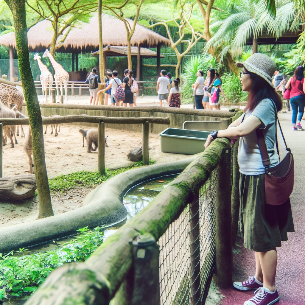Amidst the bustling zoo, she stands transfixed before the enclosure, her eyes wide with wonder and curiosity. The captivating creatures within hold her gaze, each movement a mesmerizing dance of nature. In this fleeting moment, she’s transported to a realm of awe and fascination, her spirit uplifted by the beauty of the animal kingdom.