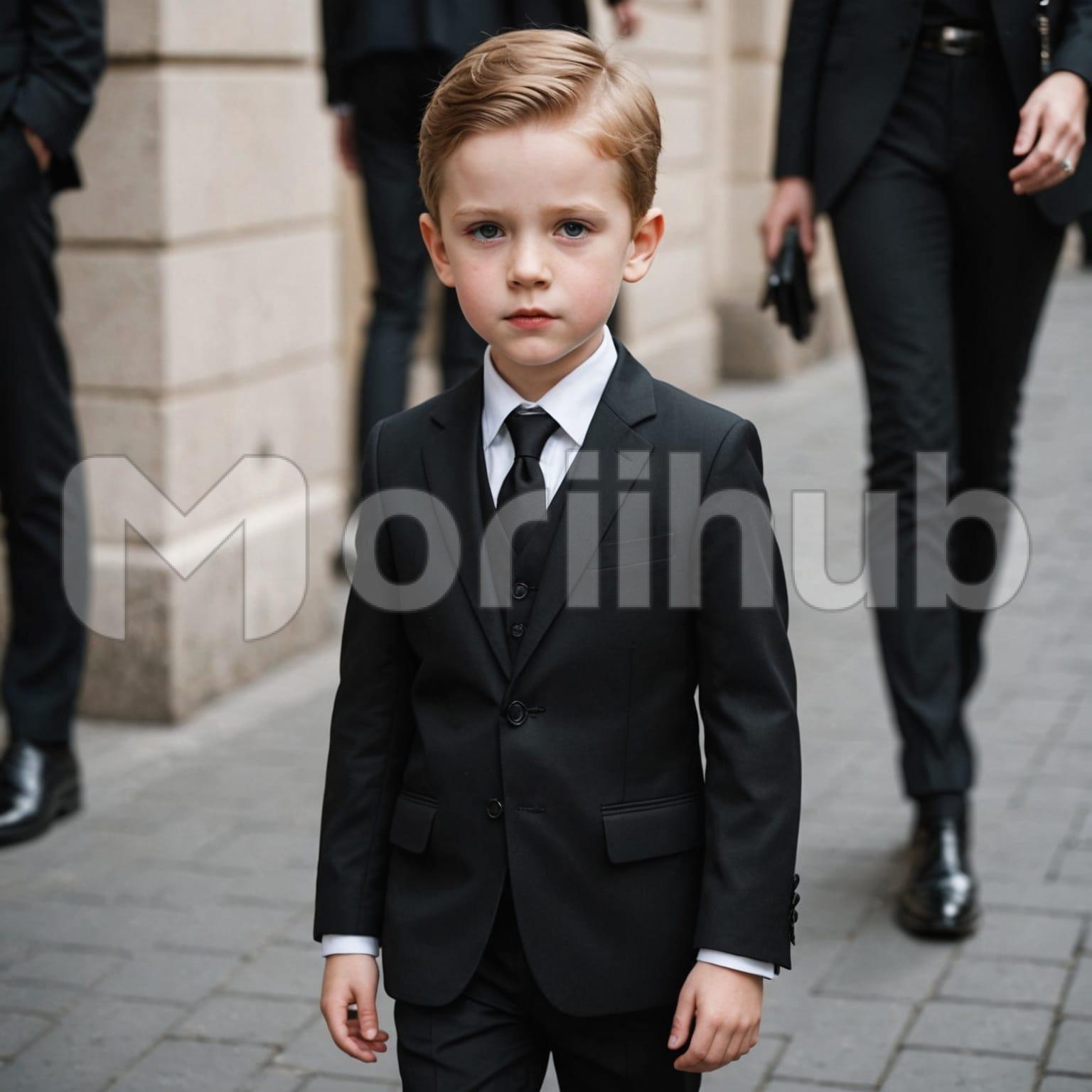 A cute little boy stands still, wearing a suit that fits him just right. The jacket is smooth and buttoned, the collar even against his neck. His short hair is neatly combed, and his expression is calm, not forced. He isn’t posing or playing—just standing there, steady and natural. The suit doesn’t look oversized or stiff; it suits him in more than one way. There’s a quietness to how he holds himself, a kind of still presence that doesn’t ask for attention. He looks comfortable, dressed up but entirely at ease in it.