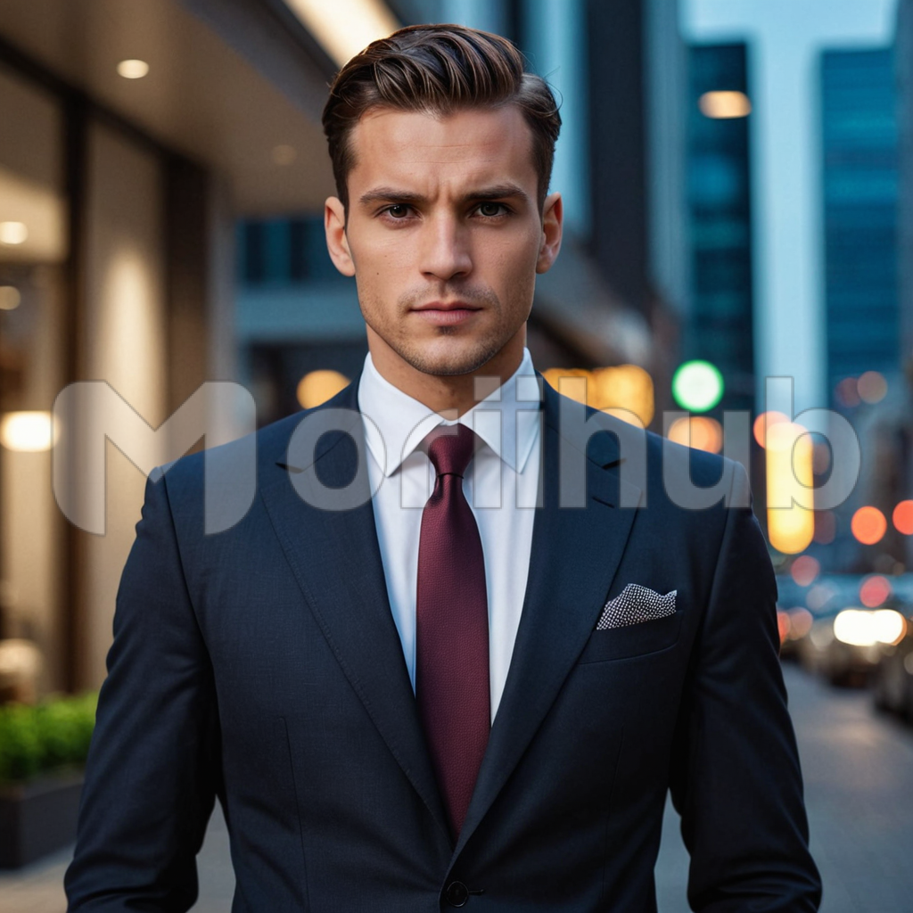 In a dapper suit, a man exudes confidence as he gazes ahead with purpose. His attire, meticulously tailored, accentuates his stature and presence. With a steely gaze and a resolute expression, he embodies determination and ambition. Each detail of his ensemble speaks of refinement and elegance, from the perfectly knotted tie to the polished shoes. In this poised stance, he epitomizes the timeless allure of sophistication and style.