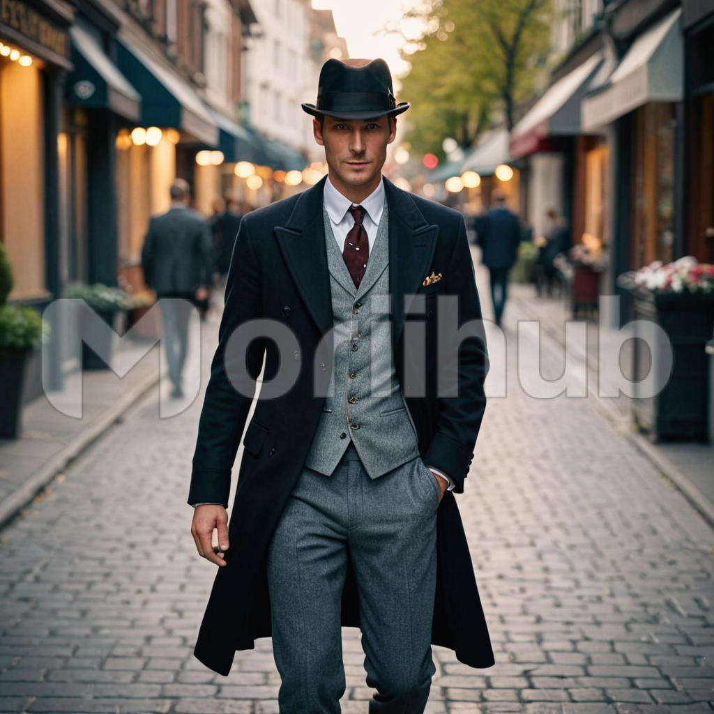 Amidst the bustling streets, a fashionably dressed man strides with effortless confidence. Adorned in a sleek suit and stylish hat, he exudes sophistication and charm. With one hand casually tucked in his pocket, he moves with purpose and grace, catching the admiring glances of passersby. Each step is a testament to his impeccable style and self-assurance, as he navigates the urban landscape with a timeless elegance that commands attention.