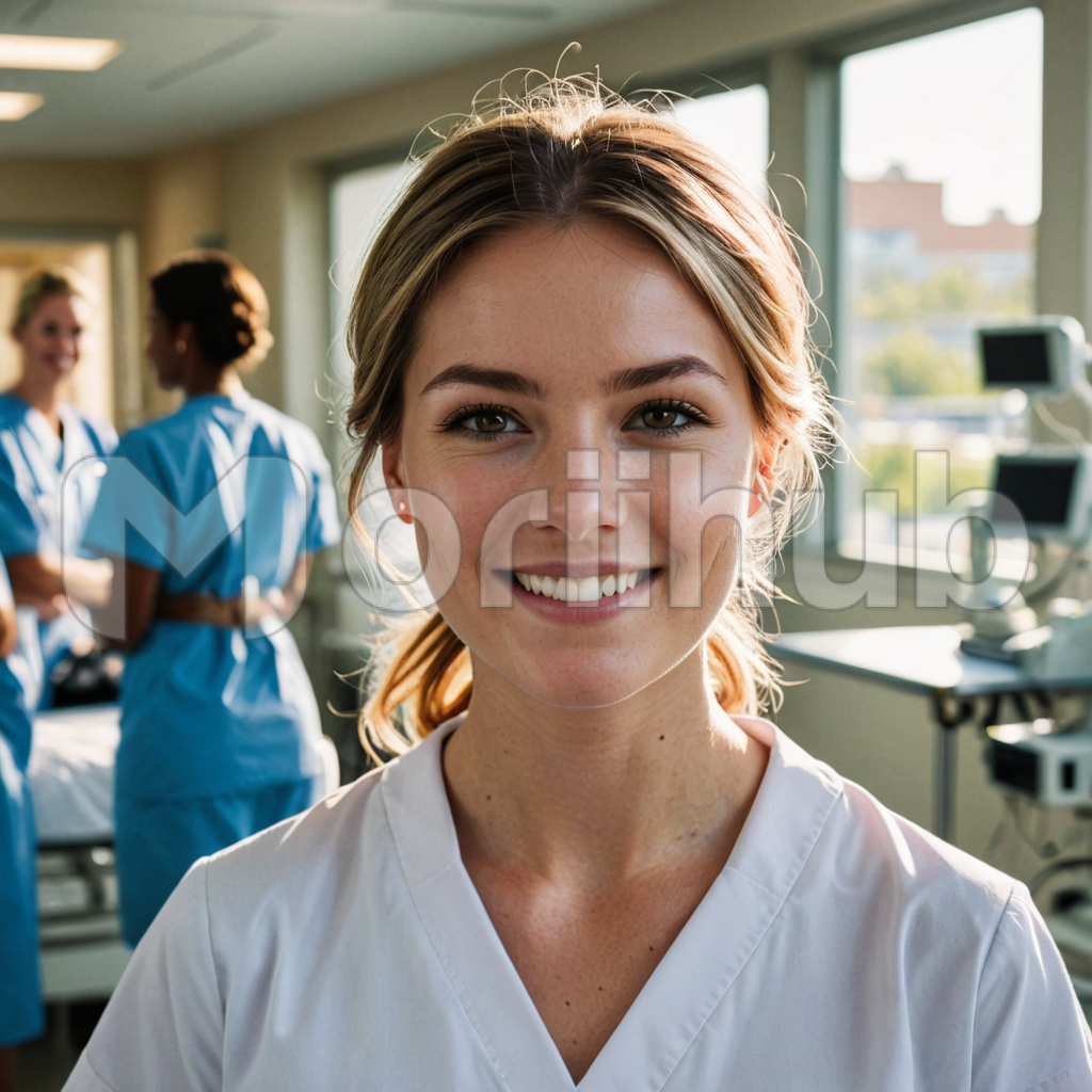 Amidst the bustling hospital ward, a nurse beams with warmth and compassion, her smile a beacon of comfort amidst the flurry of activity. Behind her, fellow nurses work diligently, their focus evident as they attend to various tasks. Despite the hectic atmosphere, her cheerful demeanor remains unwavering, a testament to her dedication and resilience. In this busy yet harmonious scene, her smile serves as a reminder of the unwavering commitment of healthcare professionals.