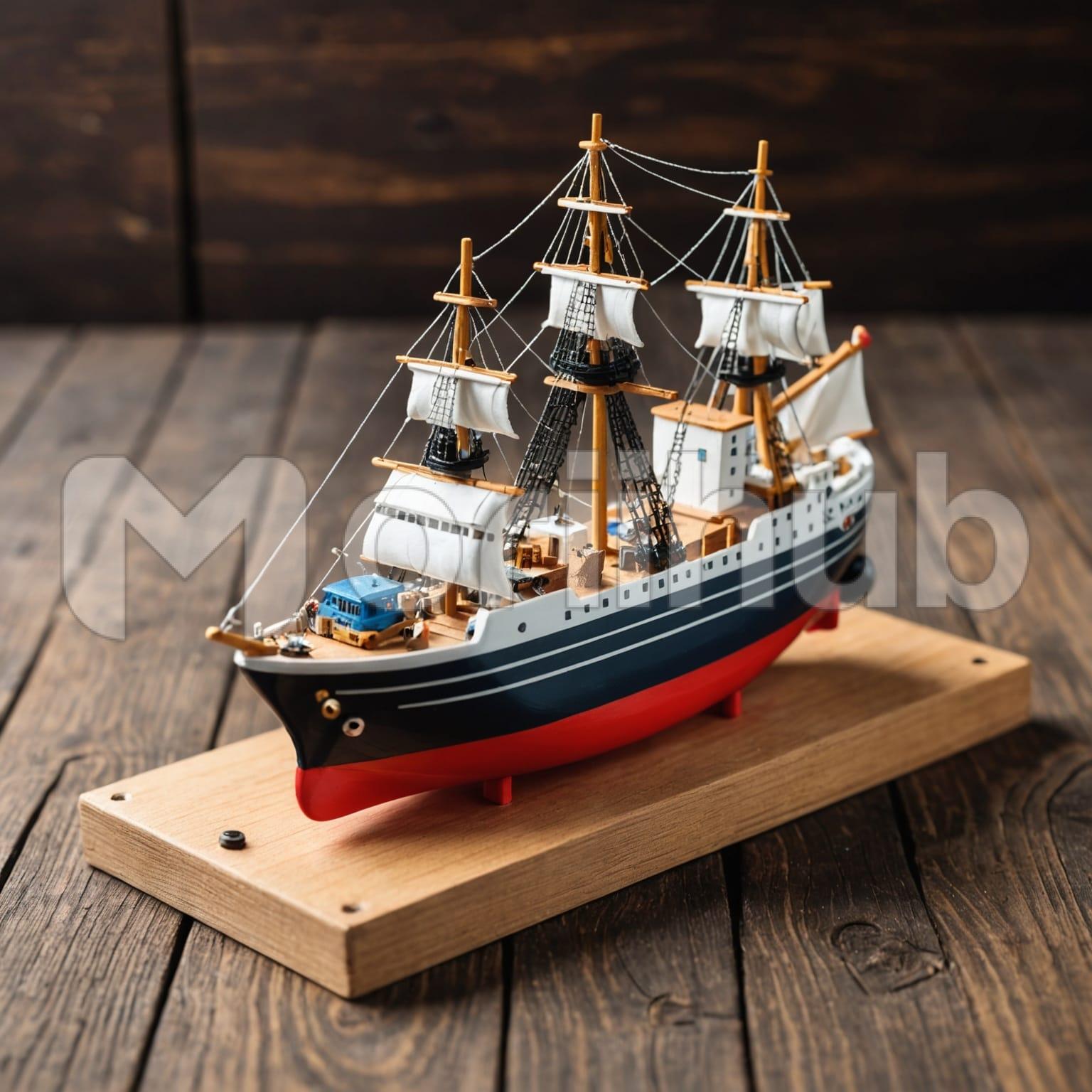 A miniature ship rests on a surface, its finely crafted details evoking the essence of seafaring tradition. The hull showcases smooth curves, with intricate railings running along its edges. Tiny ropes and delicate carvings accentuate its structure, capturing the craftsmanship behind its design. The deck features small elements reminiscent of a full-sized vessel, adding depth to its appearance. Carefully placed embellishments enhance its maritime charm, giving it an air of nostalgia. The ship stands as a testament to nautical heritage, inviting admiration for its artistry and timeless appeal.