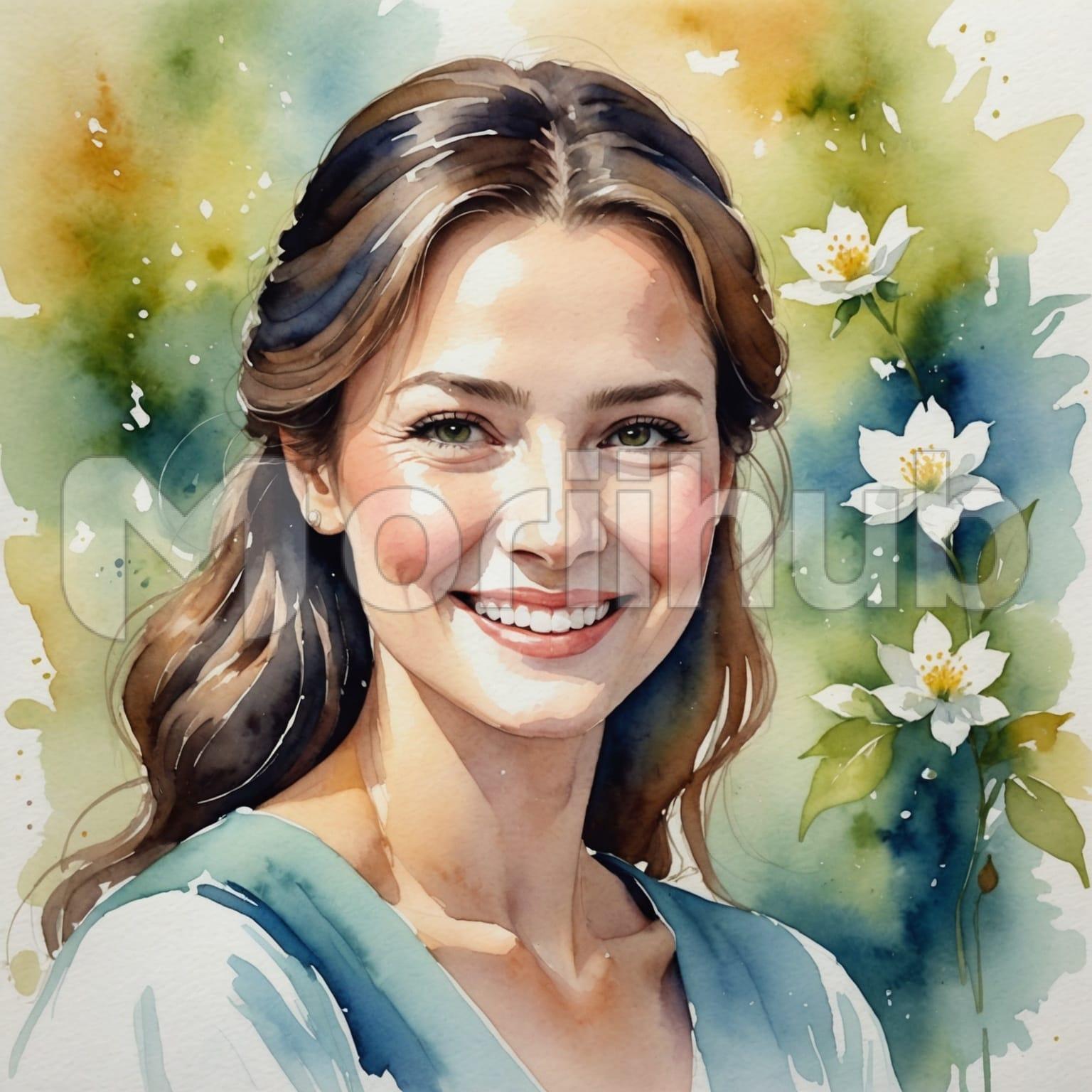 A drawing of a beautiful woman smiling captures her warmth and elegance in every stroke. Her eyes sparkle with joy, complementing the gentle curve of her lips. The softness of her features is accentuated by delicate shading, adding depth to her radiant expression. Her hair flows effortlessly, adding to her graceful demeanor. The simplicity of the background allows her smile to shine, highlighting the natural beauty in her face. The overall effect is a timeless portrait of happiness and charm, evoking feelings of warmth and serenity.
