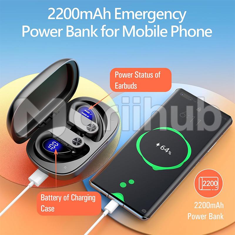 Dual LED Digital Display: Bluetooth headphones with LED screen display the remaining power of the charging case by the left number and the charging status of the bluetooth earbuds by the right LED light bar, which can visually reflect real-time power to ensure timely charging. The case of the earbuds wireless bluetooth presents its battery levels from 1 to 100. Once wireless headphones are placed back into the charging case, which will begin to charge, and stop flashing until fully charged.