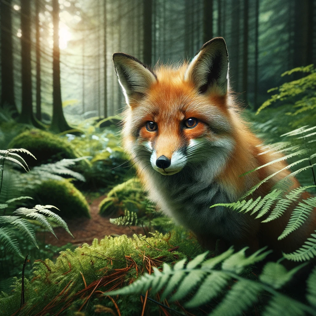 In its natural habitat, a majestic fox prowls with grace and poise, its vibrant orange fur contrasting vividly against the dense undergrowth. With keen eyes and a keen sense of curiosity, it navigates through the intricate tapestry of its woodland domain, embodying the untamed beauty of the wilderness.
