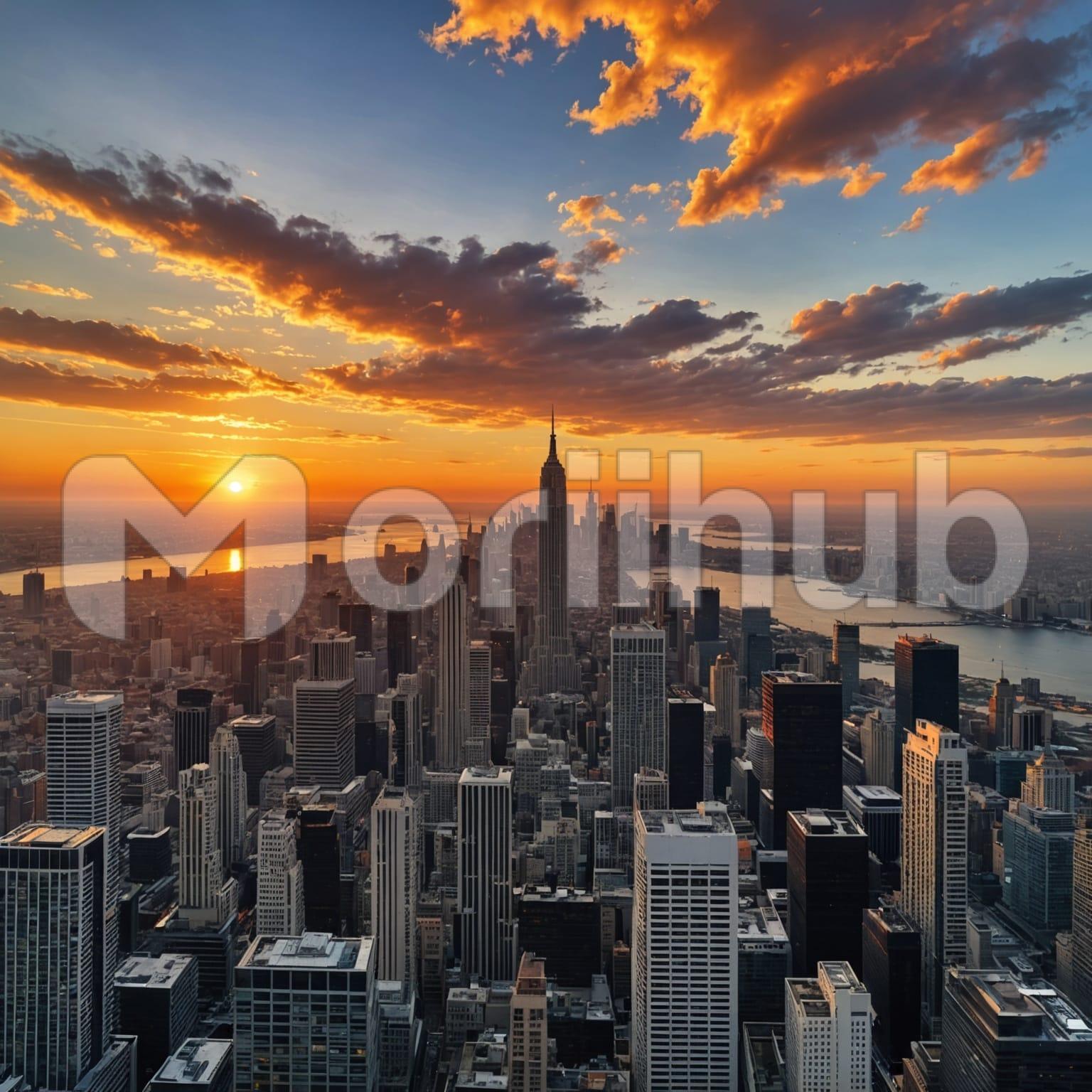 A wide view captures the city beneath a sky shifting toward dusk. Buildings stretch across the scene in steady rhythm, their edges softened by the overhead light. Above, clouds drift in broad, uneven forms, settled across the horizon. Beyond the last row of structures, a river runs through the distance, its surface reflecting faint light. The scene holds still, each element quietly in place—no urgency, no movement. The transition of the sky continues without drawing attention to itself. Nothing competes. The moment simply exists, and the city remains within it.