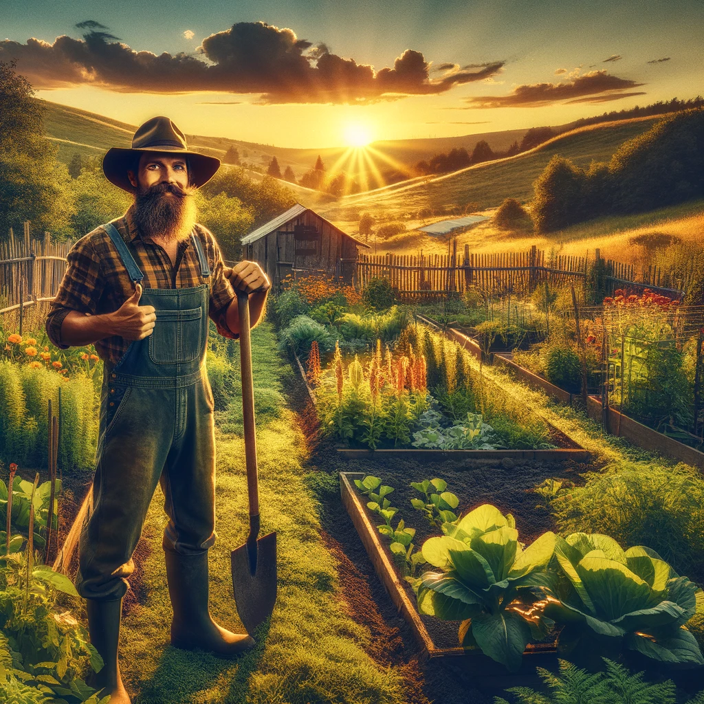 As the first rays of sunlight break through the horizon, the farmer stands amidst his garden, a picture of quiet contentment. Dewdrops glisten like diamonds on the leaves, and the earth exhales a fresh, earthy scent. With a heart filled with anticipation, he awaits the promise of a new day, ready to tend to his beloved crops with care and dedication.