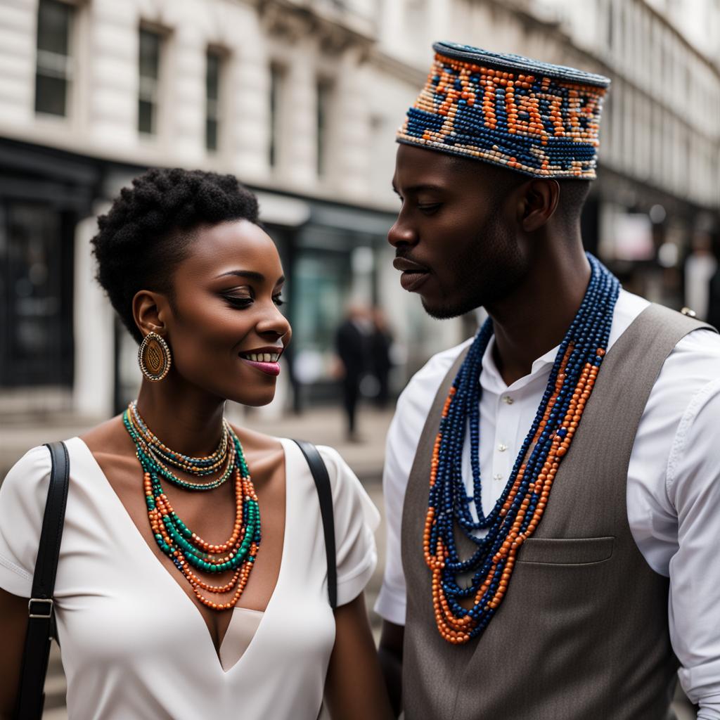 Elegance meets simplicity as an African couple embraces modern fashion. The woman exudes sophistication in a pristine white polo dress, epitomizing timeless grace. Beside her, the man exudes charm in a tailored waistcoat, effortlessly blending tradition with contemporary style. Together, they radiate a refined and harmonious fashion statement.