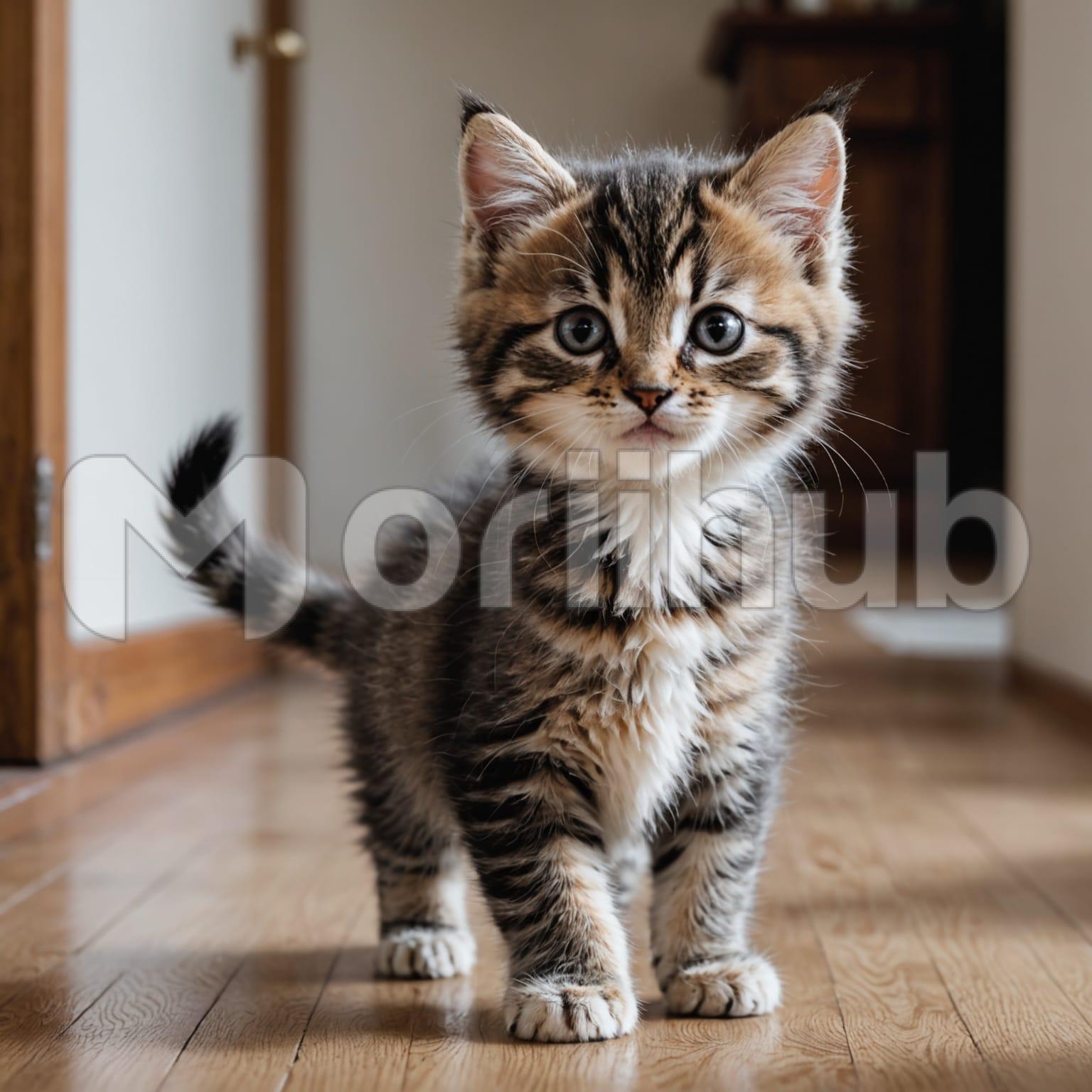A cute cat walks forward with quiet steps, its body steady and aligned. The head is slightly lifted, eyes looking ahead with calm focus. Its ears remain forward, alert but relaxed. Fur lies smooth along its back, undisturbed by motion. Each step follows the next without hurry, measured and balanced. The tail rises behind it, gently curved, moving in rhythm with its stride. The space around is open, giving the cat room to pass through without obstacle. The moment holds, shaped by quiet intention and the cat’s composed, deliberate pace.