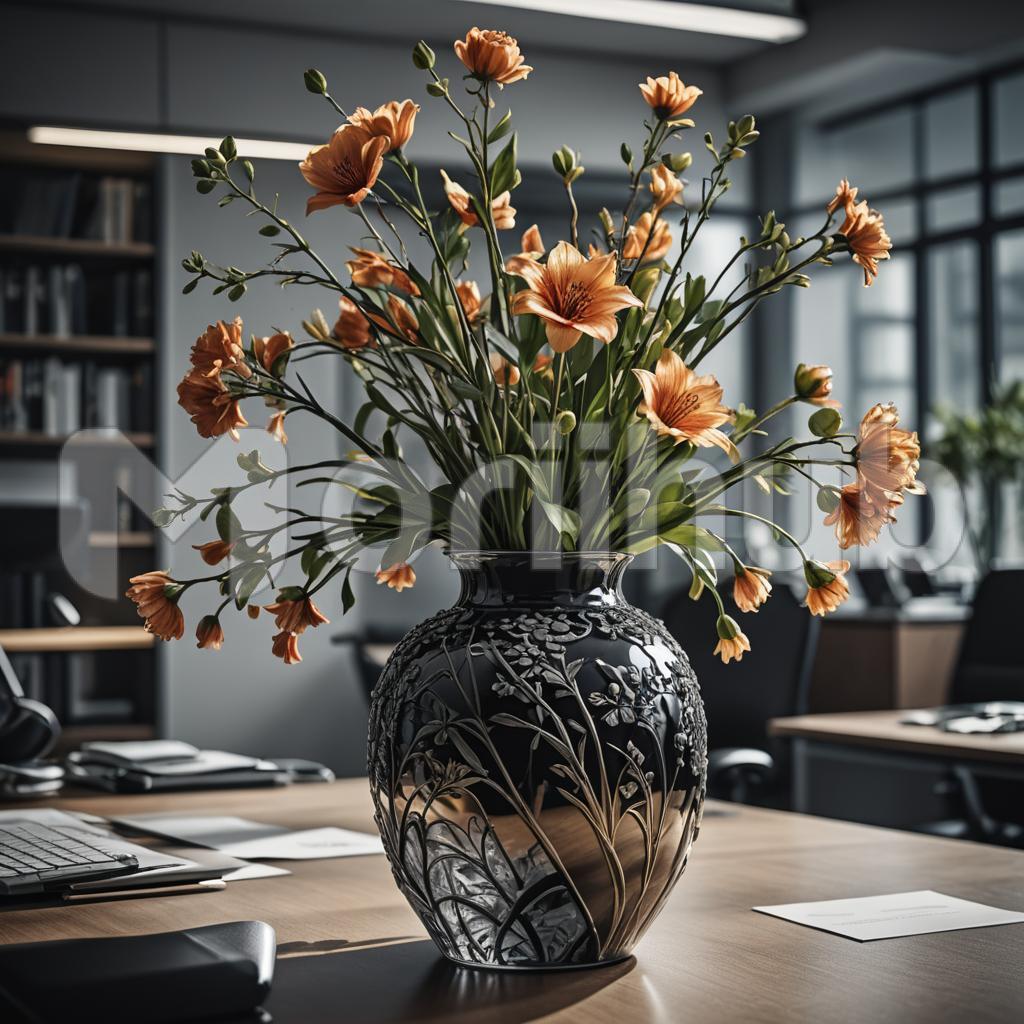 On the office table, a beautifully crafted flower vase stood as a centerpiece, adding a touch of elegance and serenity to the workspace. The vase, with its intricate design and vibrant colors, held an array of fresh flowers—roses, lilies, and daisies—that brightened up the room with their lively hues and delicate fragrances. The sight of the flowers provided a refreshing contrast to the monotony of paperwork and computer screens, offering a moment of tranquility and inspiration. Colleagues often paused to admire the arrangement, feeling a sense of calm and renewed energy in its presence. The flower vase not only enhanced the aesthetic appeal of the office but also uplifted the spirits of everyone around.