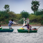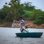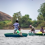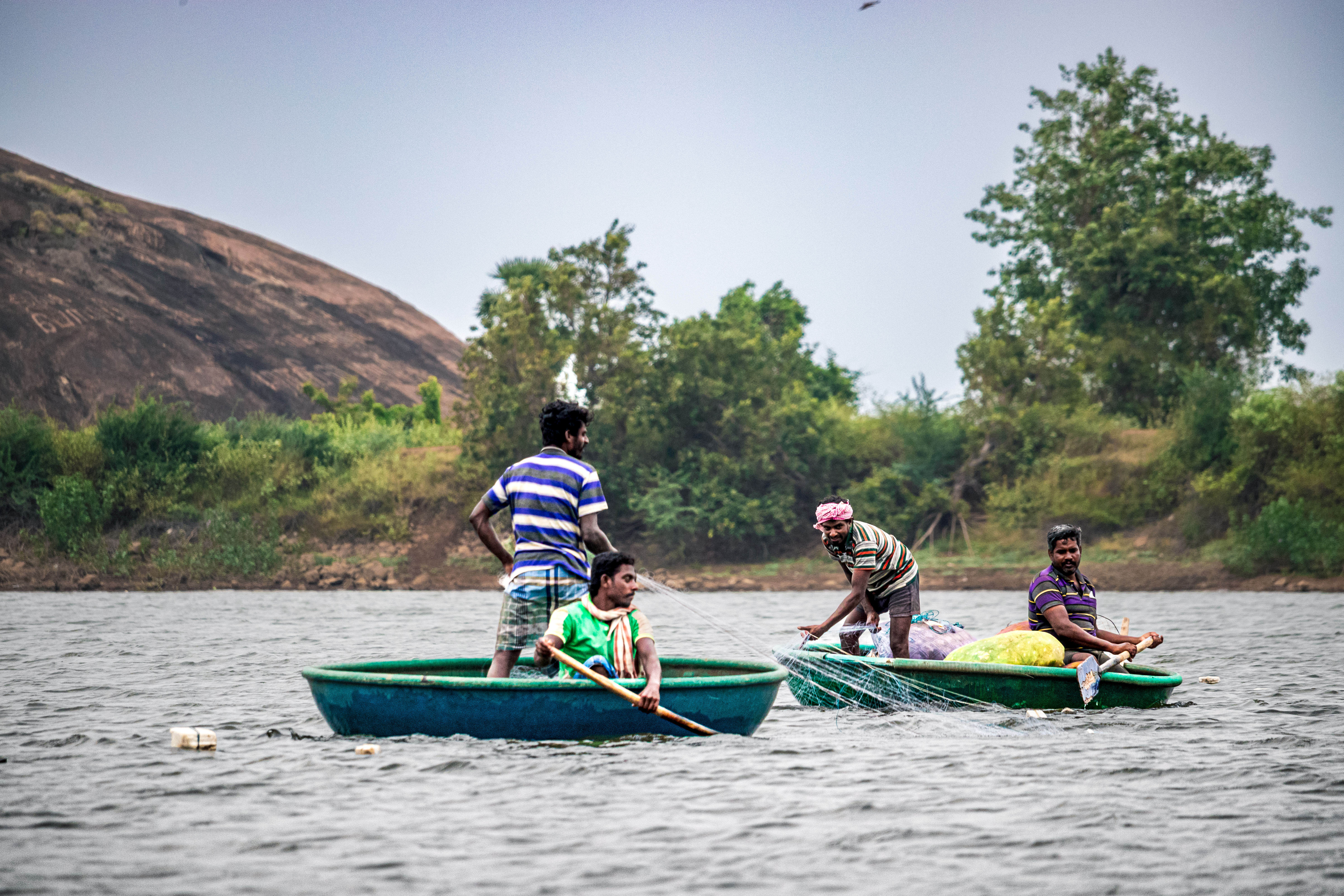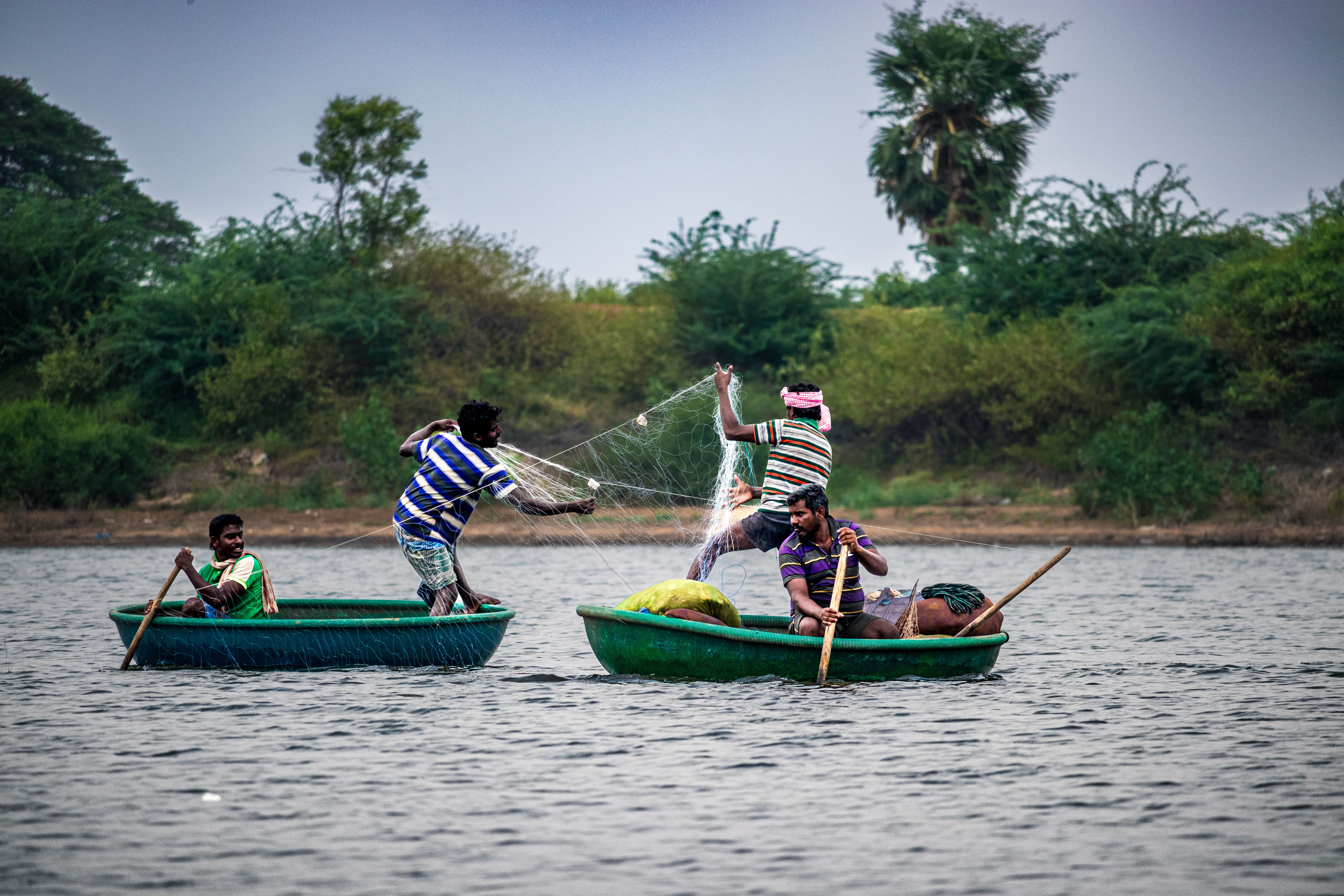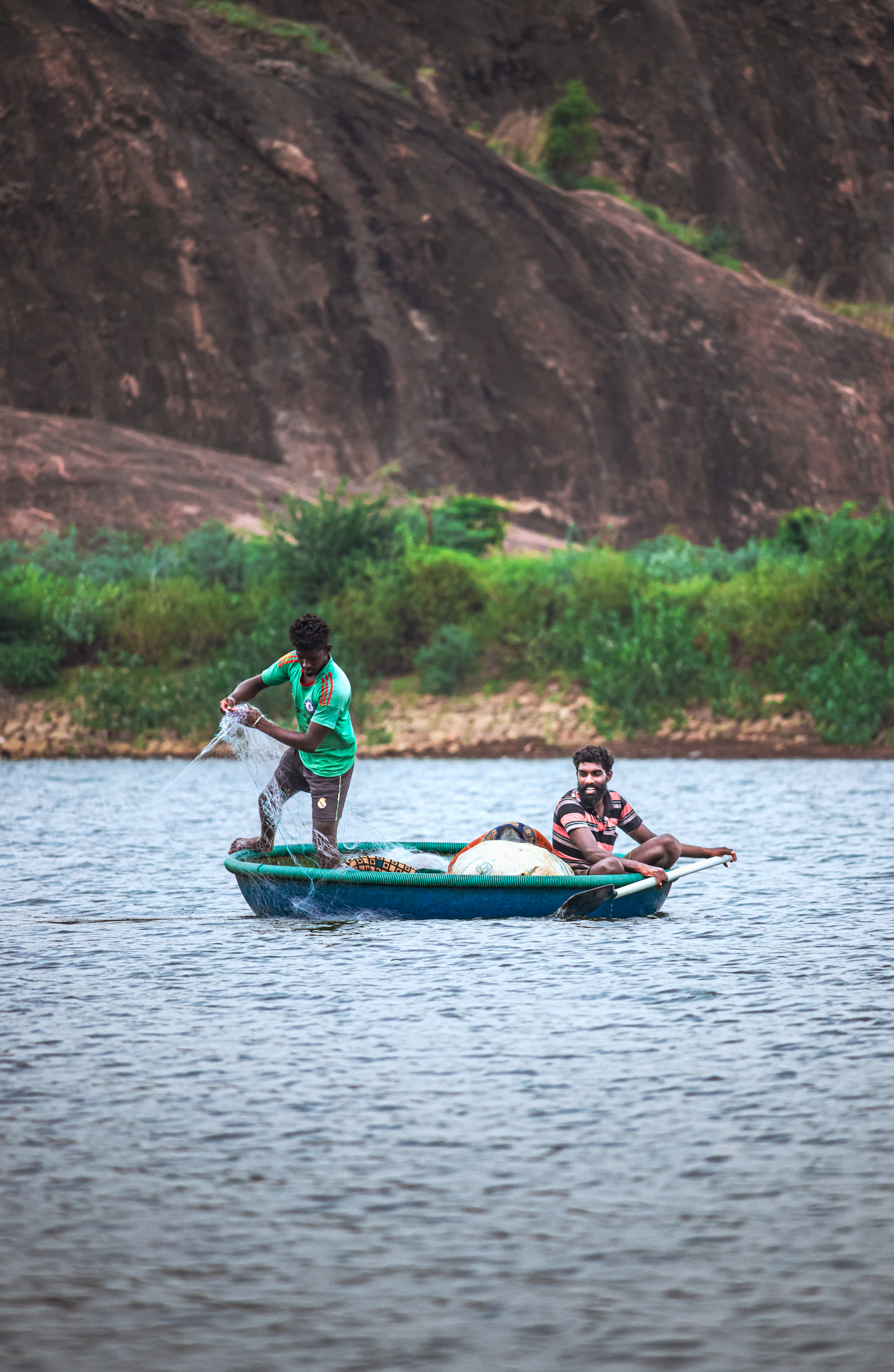 This captivating photograph captures the timeless tradition of fishermen using coracles to fish in a serene mountain pool. Set against the backdrop of towering mountains, the scene exudes tranquility and cultural richness. The fishermen skillfully maneuver their round, woven boats, casting their nets into the crystal-clear waters below. This image evokes a sense of harmony between humanity and nature, showcasing the enduring connection between traditional practices and the natural environment. Perfect for illustrating themes of sustainability, cultural heritage, and the beauty of outdoor pursuits.