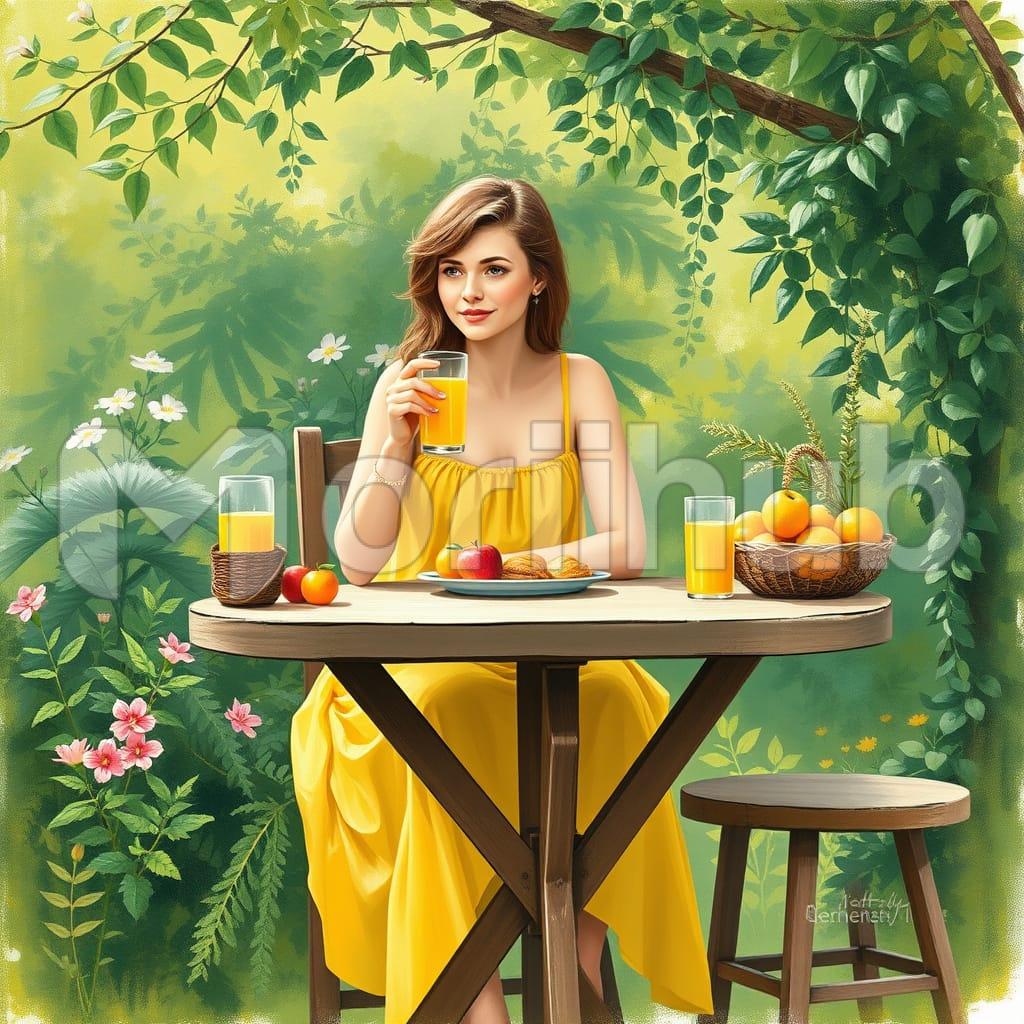 Sunlight filters through the window onto a bright table set with a fresh breakfast spread. Crisp fruits, warm toast, and a glass of vibrant apple juice glisten invitingly. The air is filled with the scent of morning calm and wholesome flavors, promising a refreshing start to the day.