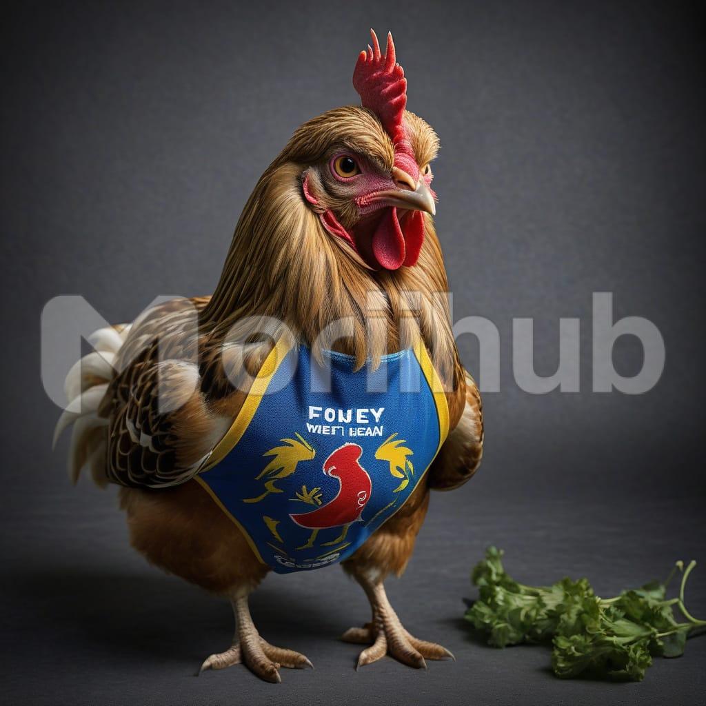 This funny, bold hen struts around in a jersey, looking ready to take on the world. With its confident stance and quirky outfit, it’s the perfect blend of humor and charm. The hen’s bold personality shines through as it waddles proudly, making everyone around smile at its unique sense of style.