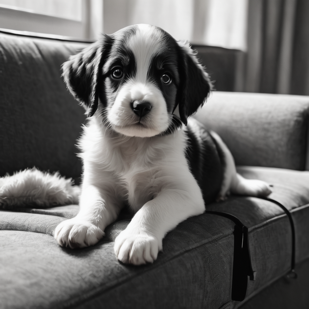 Sprawled on the couch, a puppy captivates with innocent curiosity, fixated on an unseen horizon. The soft fur and tiny paws enhance the endearing scene. With wide-eyed wonder, the pup’s gaze projects a blend of curiosity and contentment, lost in the contemplation of an imagined adventure. The cozy couch becomes a haven for dreams, as the little one’s adorable presence adds warmth to the room, embodying the charm of puppyhood’s unassuming allure.