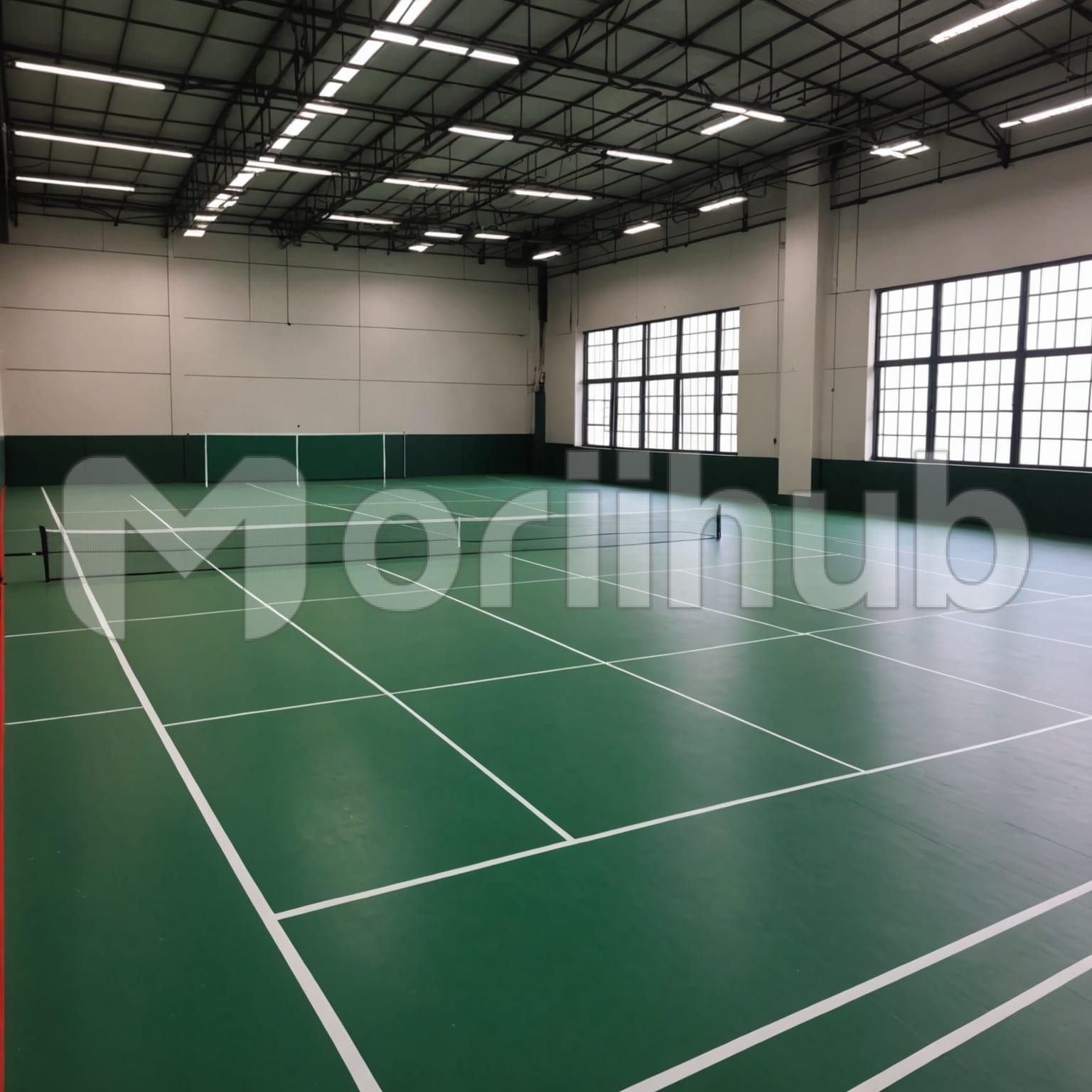 A badminton court with its vibrant lines and crisp boundaries offers a perfect setting for fast-paced action. The net stretches across, dividing the space where players engage in quick rallies, showcasing skill and agility. The court, whether indoor or outdoor, invites competitive play and fun alike.