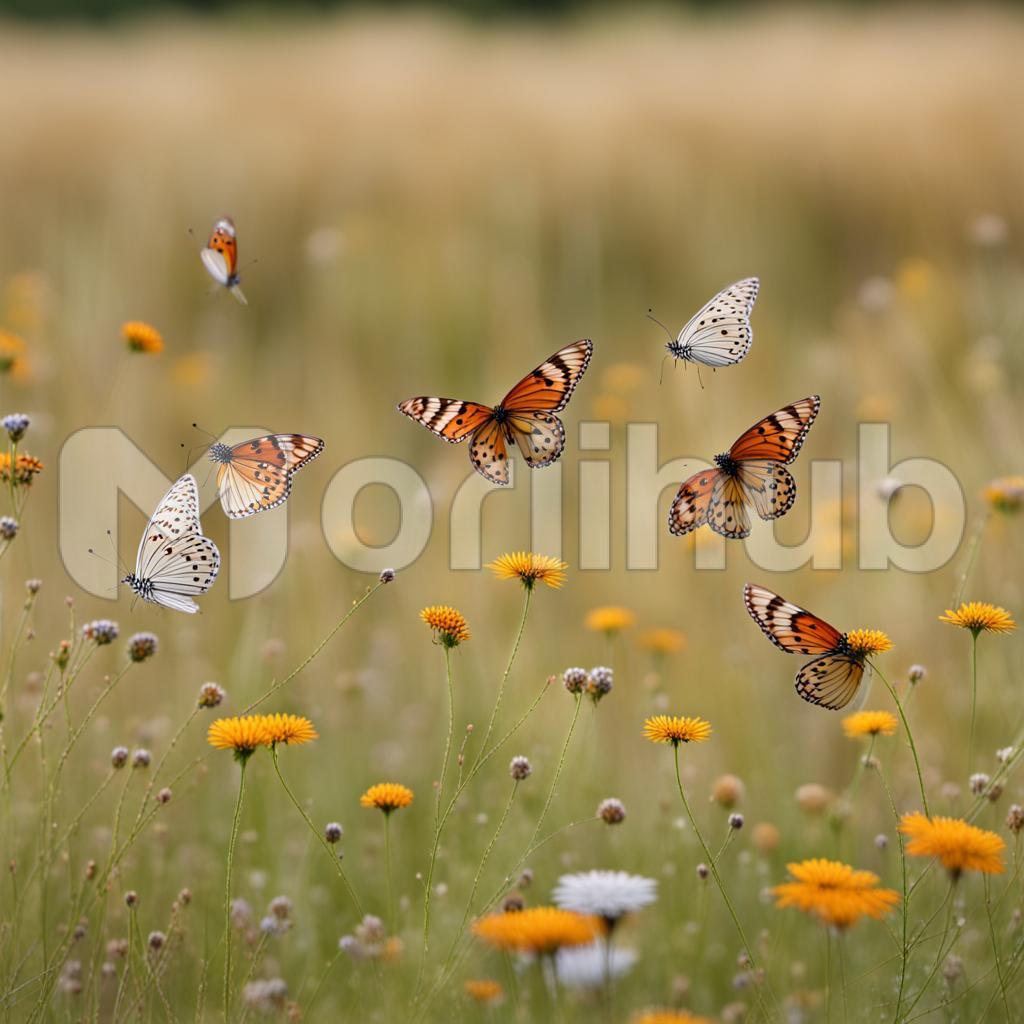 In a sunlit meadow, a kaleidoscope of butterflies creates a living tapestry, their delicate wings painting the air with vibrant hues. The field, adorned with an array of blooming flowers, becomes a haven for these ethereal dancers. Each fluttering moment is a celebration of nature’s grace, as the butterflies weave through the petals, extracting nectar in a harmonious ballet. The air is alive with the gentle hum of their wings, and the blossoms sway, enchanted by the ephemeral beauty of these winged wonders.