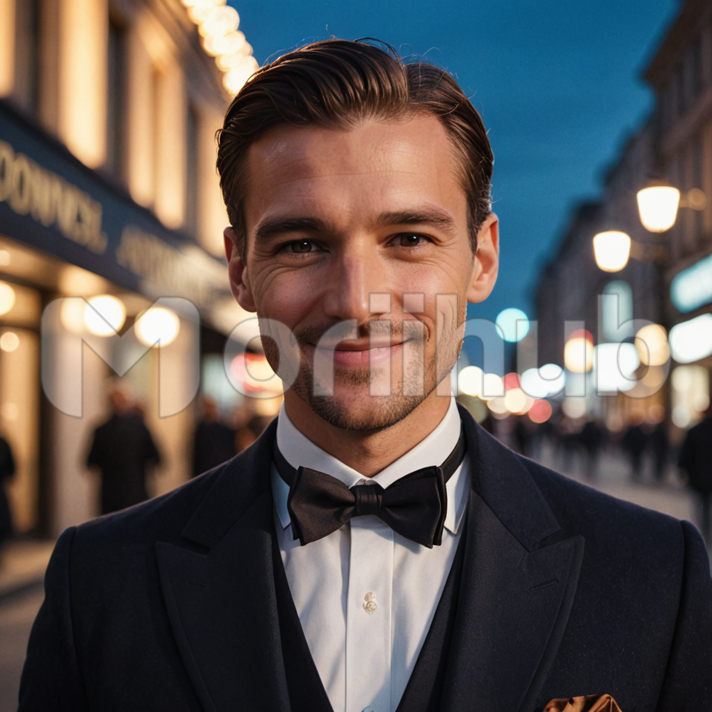 Dressed in a sharp suit and a neatly tied bow tie, a dapper man exudes charm and confidence with a captivating smile. His attire speaks of timeless elegance, every fold and crease meticulously tailored to perfection. With a twinkle in his eye and a grin on his lips, he radiates warmth and charisma, drawing others into his orbit effortlessly. In his poised demeanor and stylish ensemble, he epitomizes sophistication and sartorial finesse.