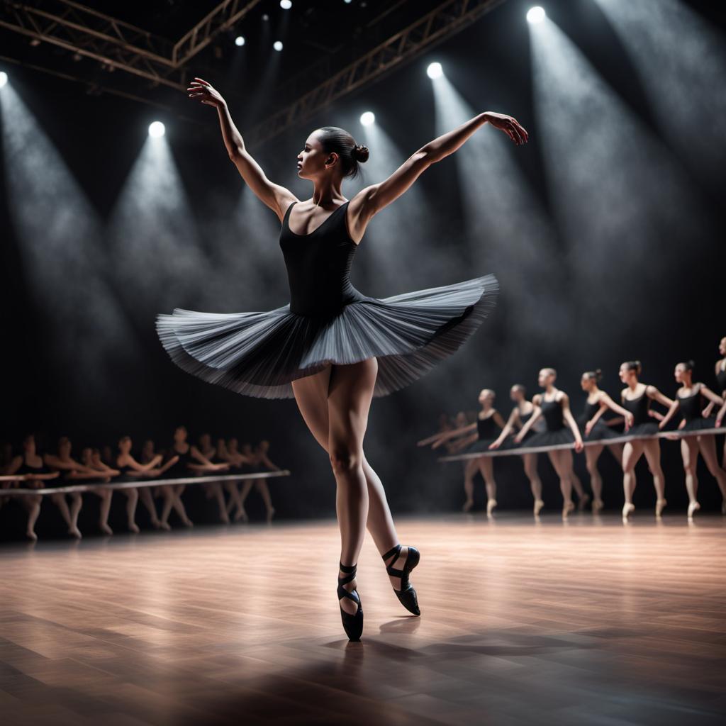 In the enchanting ambiance of a dimly lit theater, a ballet dancer graces the stage, bathed in the spotlight’s glow. Every movement is poetry in motion, a graceful dance that captivates the audience. The ethereal performer is a silhouette against the illuminated backdrop, embodying elegance and precision. Behind, shadowed ballet dancers create a mesmerizing tableau, their forms weaving in and out of the spotlight’s embrace. The stage is alive with the rhythmic beauty of ballet, a symphony of movement and light that transcends the ordinary, transporting spectators to a world where grace and artistry intertwine.