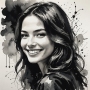 The ink drawing captures a woman smiling warmly, her expression full of life and joy. The bold lines and shading skillfully emphasize her features, bringing out the softness of her smile and the light in her eyes. Her hair flows naturally, rendered with intricate strokes that add depth and texture to the piece. The simplicity of the monochromatic style allows the emotion in her smile to stand out, creating a sense of connection and warmth. The artwork exudes a timeless quality, highlighting the beauty and grace in everyday moments, all conveyed through the elegance of ink.